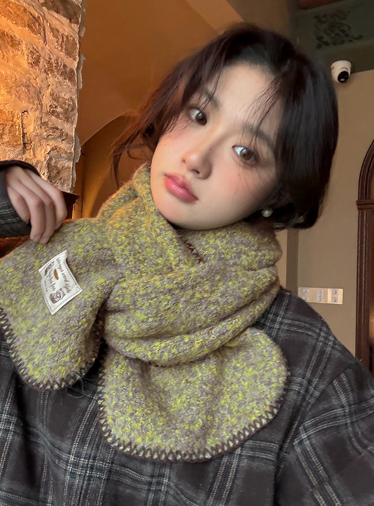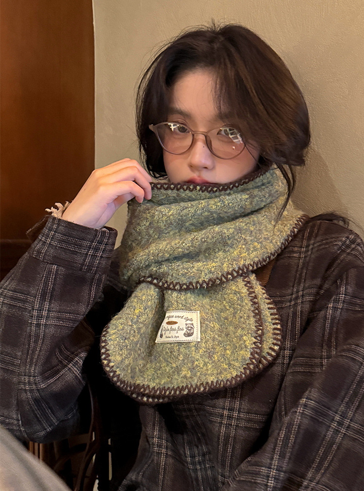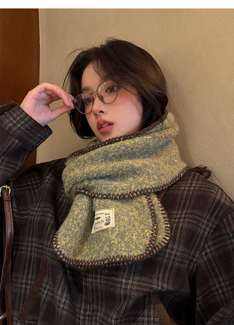 秋冬の香り漂う柔らかなウール混紡スカーフ、高級感があり多用途、厚手で暖かいニットの縁取りネックウォーマー