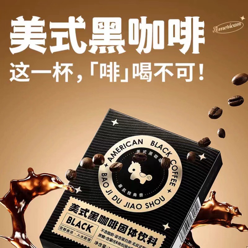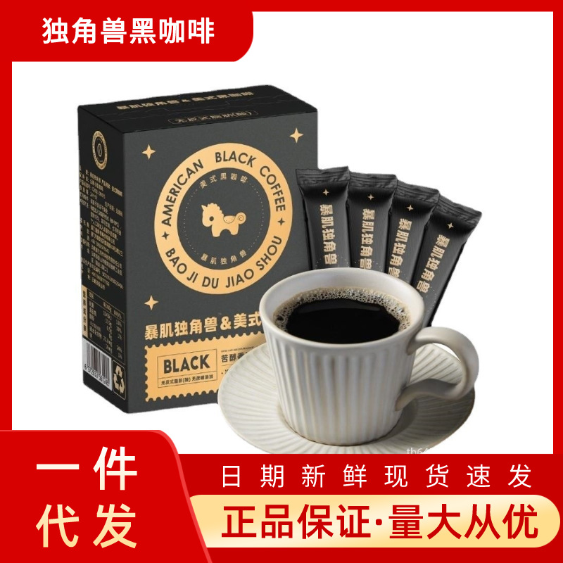 暴肌独角兽美式纯黑咖啡速溶醇香冷热双泡无蔗糖条装学生咖啡拿铁