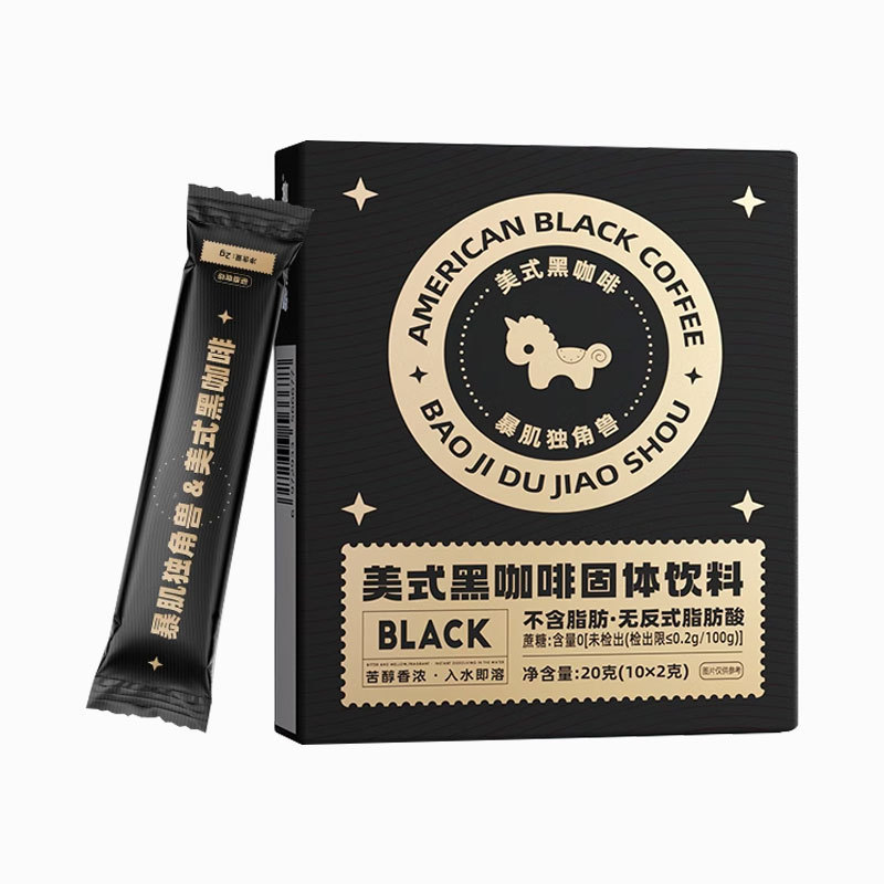 暴肌独角兽美式纯黑咖啡速溶醇香2g*10条盒装冲调下午茶提神饮品