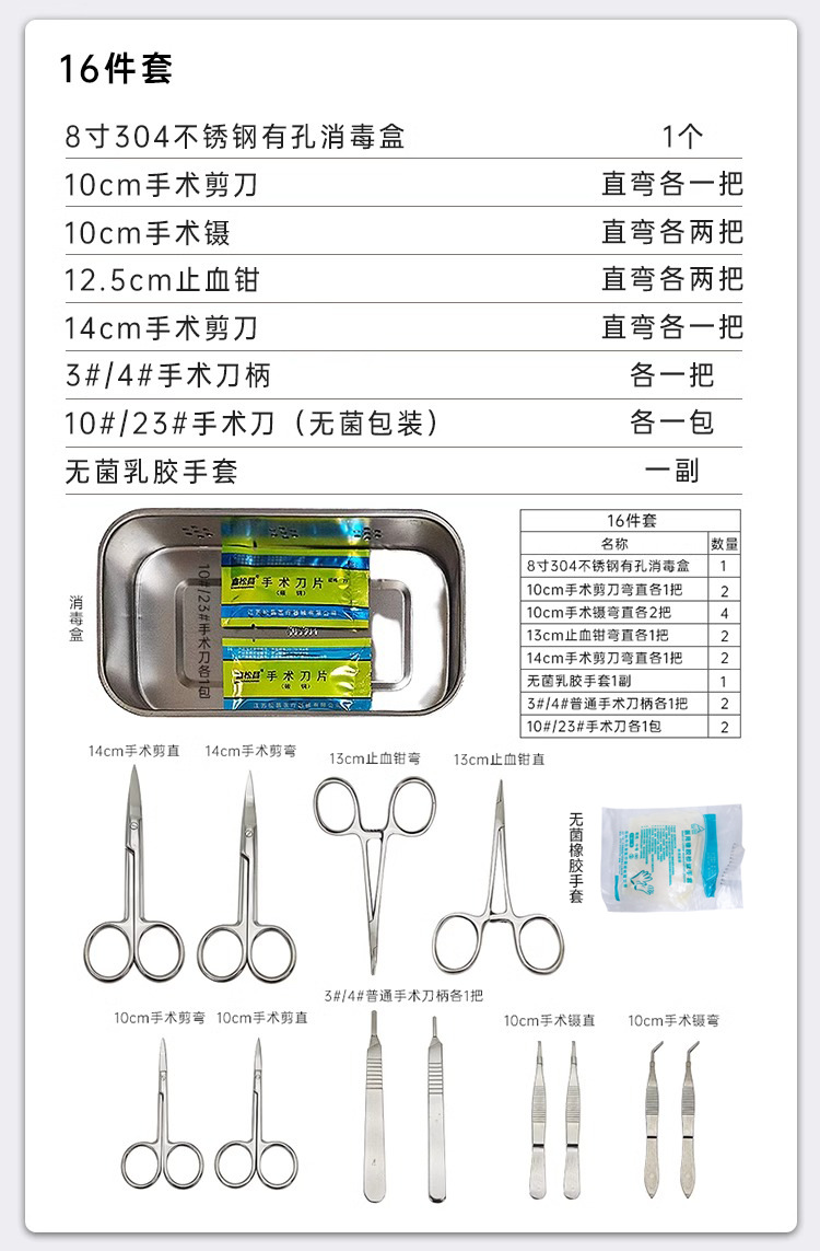 11個セット,16個セット,20個セット,シェルアップグレード11点セット,シェルアップグレード16点セット,シェルアップグレード20点セット,高品質16点セット、オススメです!,38.4inch ステンレス鋼、ハンドルなしの厚み,38.4inch ステンレス鋼、ハンドルと穴の厚み付き,10cmストレート手術用ハサミ×1本,10cmカーブ手術用ハサミ×1本,10cm手術用ピンセット ストレート×10本,10cmカーブ手術用ピンセット×10本,13cm止血子 ストレート×1本,13cm止血子カーブ×1本,14cm手術用ストレートカット×1本,14cm手術用ハサミ×1本,13cm針ホルダー×1本,12.5cm細組織ピンセット×1本,10号メス 10パック(100本入) ハンドル付き,23号メス 10パック(100本入) ハンドル付き,大小マウスシェーバー(両刃),大小のネズミの骨はさみ,小型器具消毒ボックス
