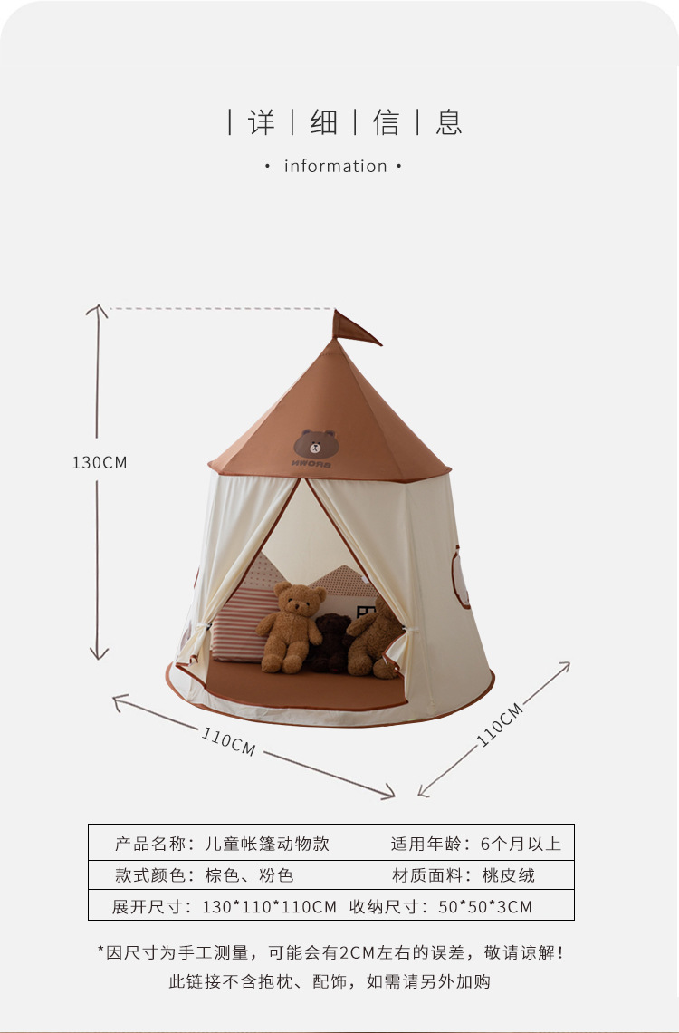 儿童帐篷动物款,面料为桃皮绒,亲肤柔软舒适!