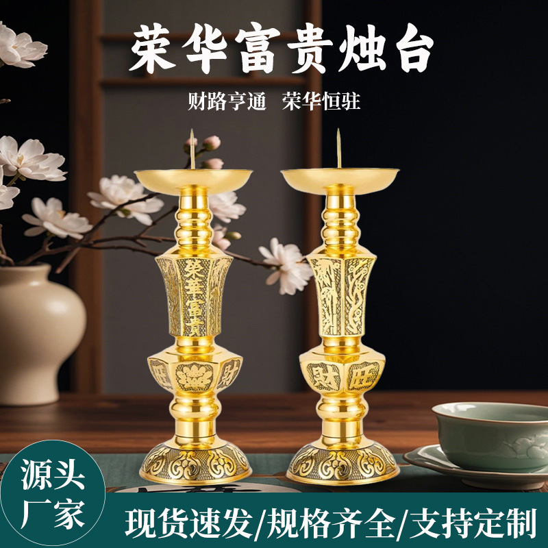 純銅の燭台のろうそく台の家庭用のろうそく台の置物の台座の全銅の黄銅は神を拝んで仏前の灯台のペアを供えます。