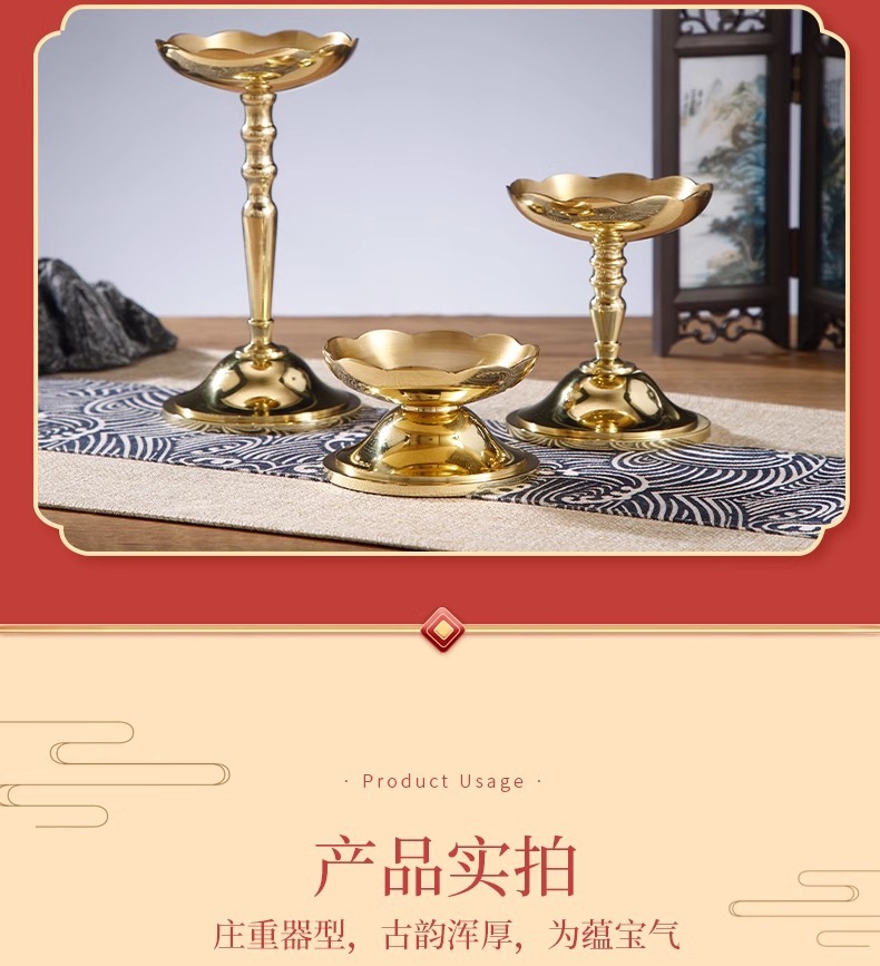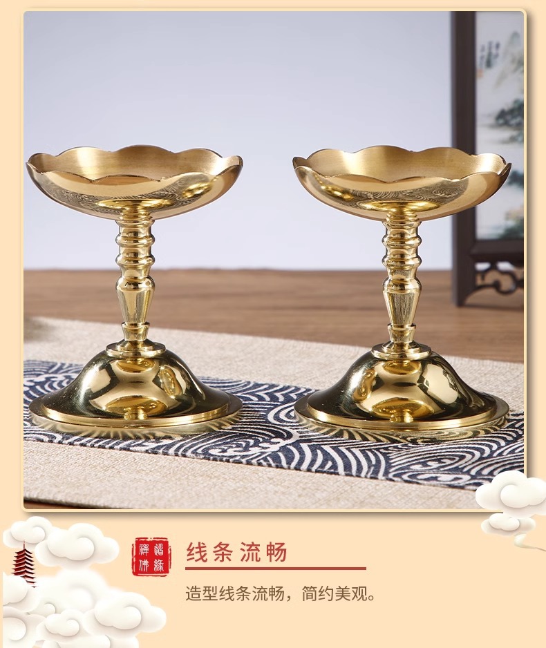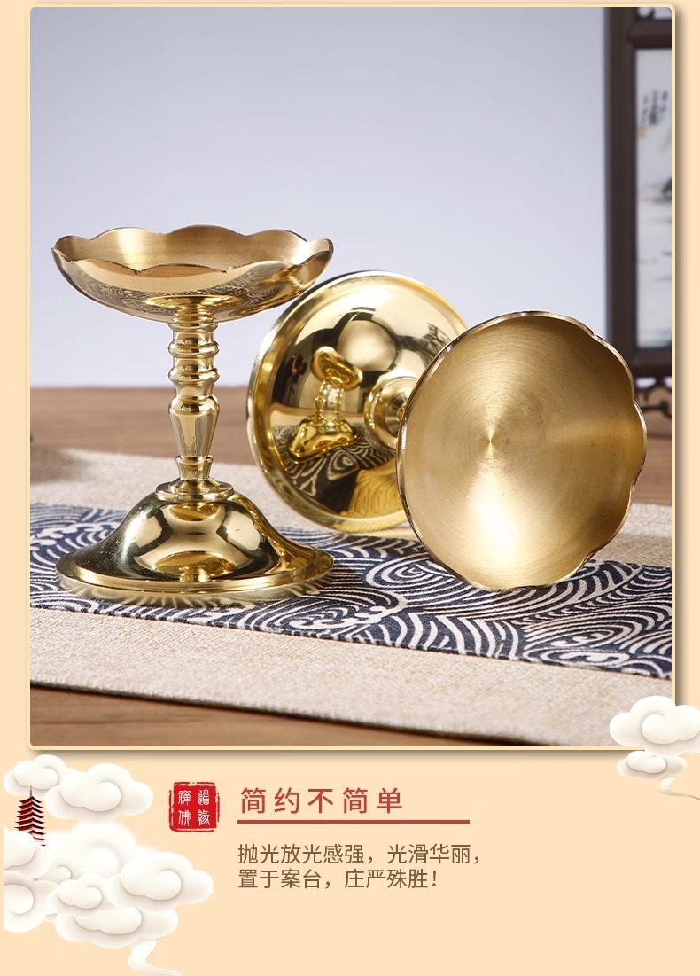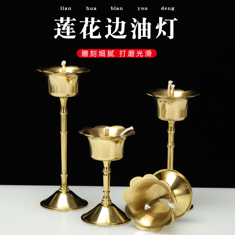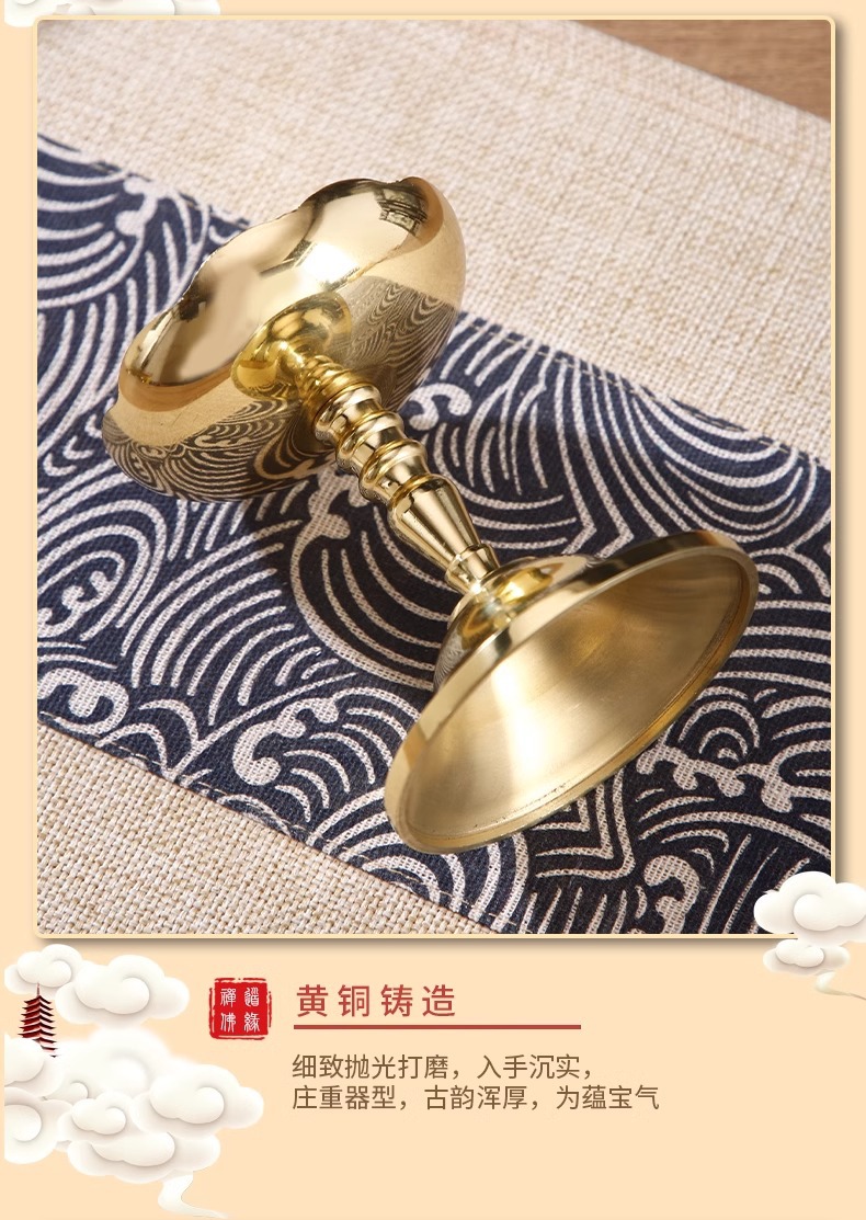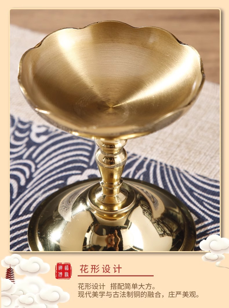 复古黄铜油灯家用液体酥油蜡烛台灯座供奉供灯灯盏花边长明灯佛具
