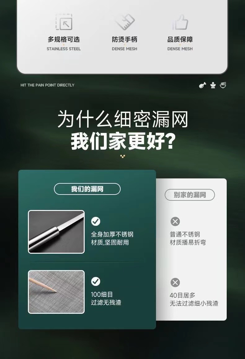 304不锈钢漏勺家用豆浆果汁过滤网筛厨房滤勺捞勺隔油漏网打沫勺