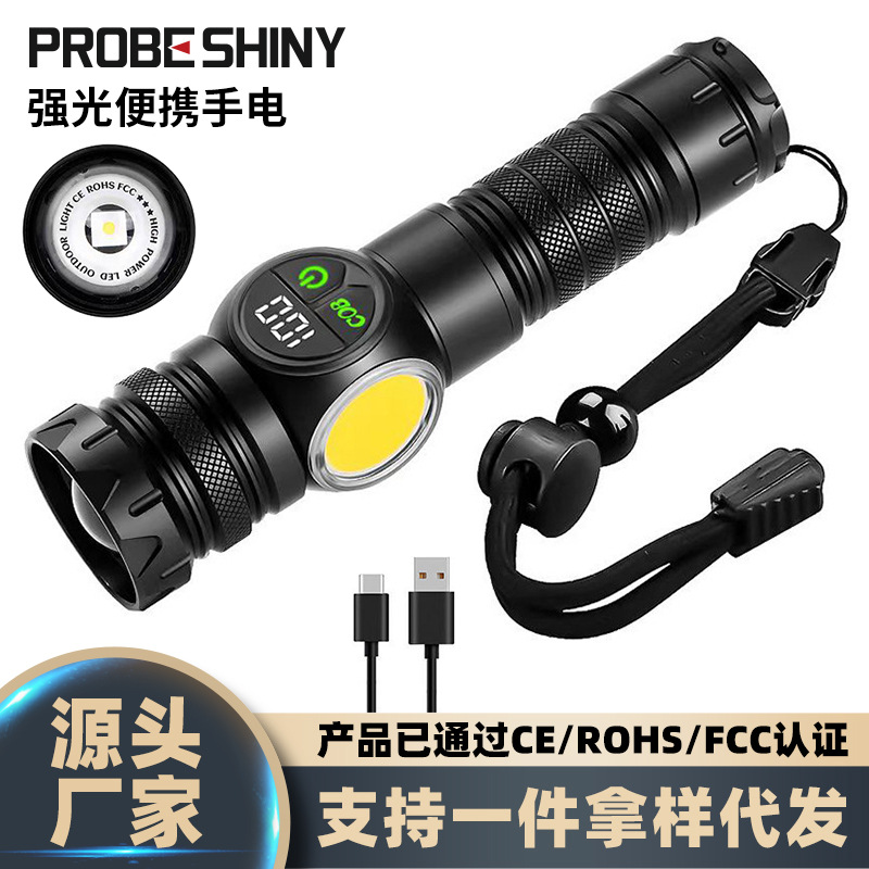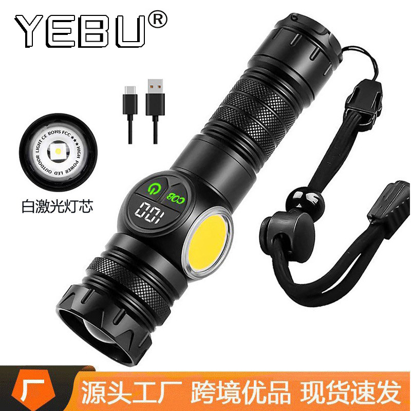 クロスボーダー白レーザー强い光の懐中电灯Type-C充电スクリーンディスプレイ强い磁気COBサイドライトダブルスイッチLED懐中电灯