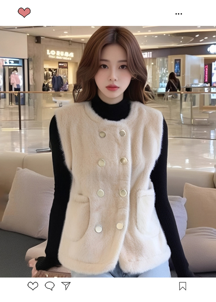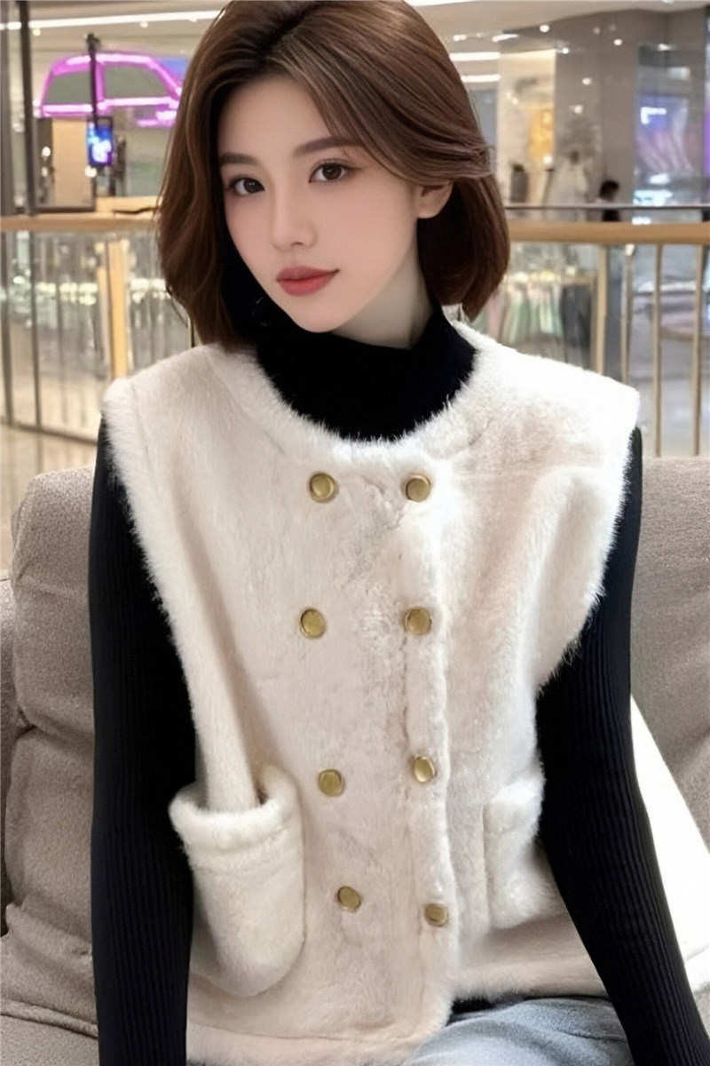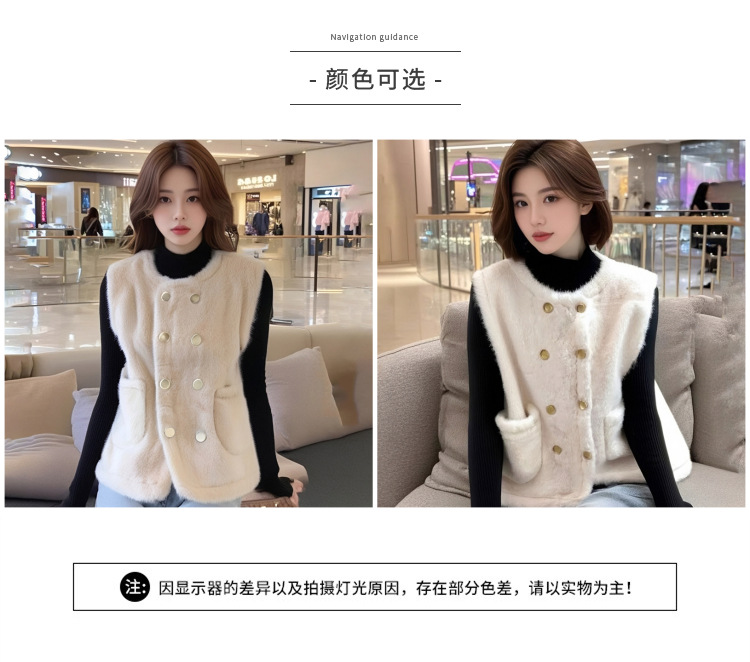 AI図現物小香風双列ボタン馬甲コート女性秋冬パイルカーディガン保温袖なし上着