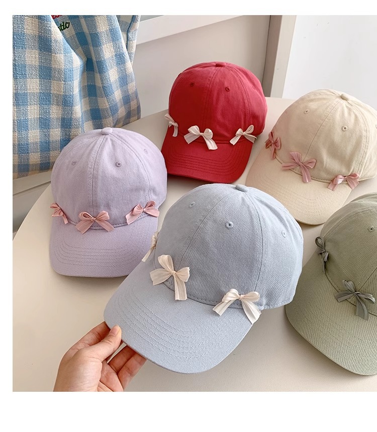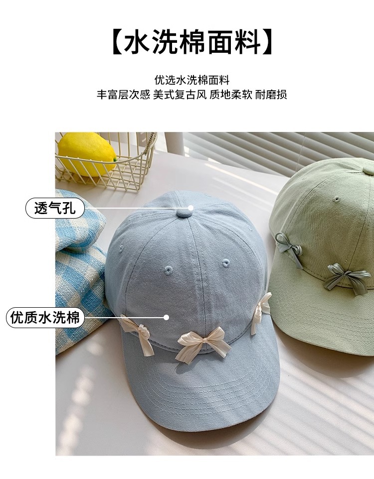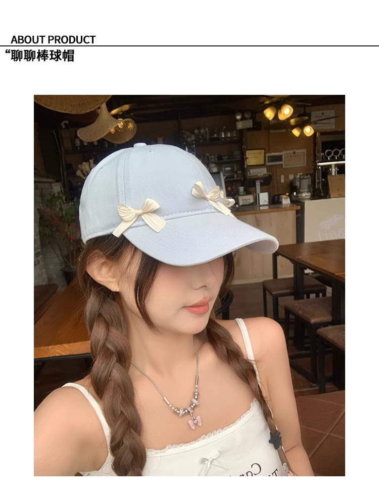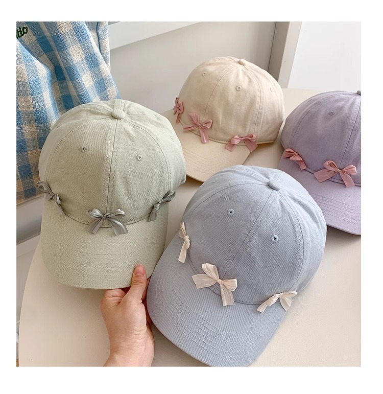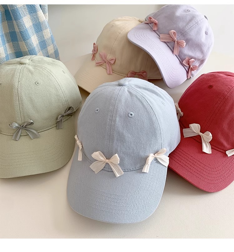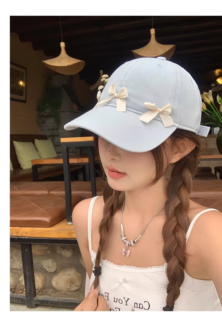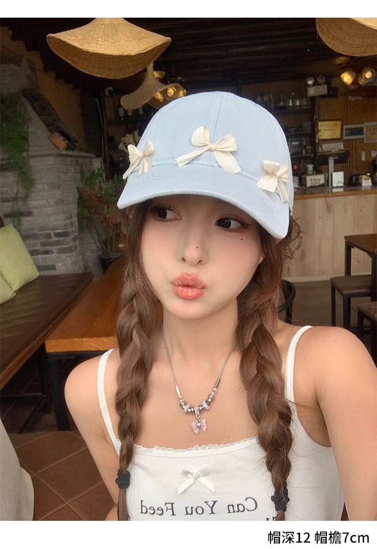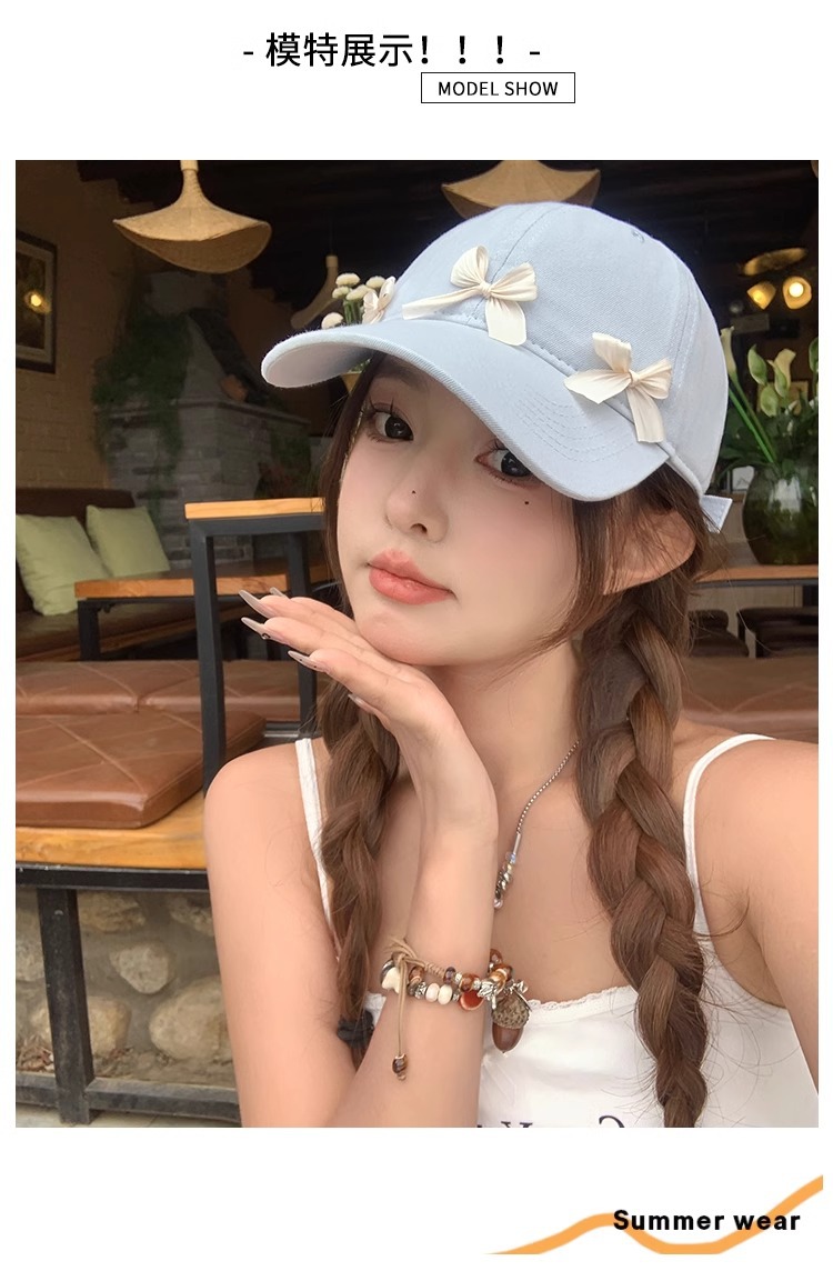 三个蝴蝶结棒球帽女韩版2025新款休闲百搭宽帽檐显脸小防晒鸭舌帽