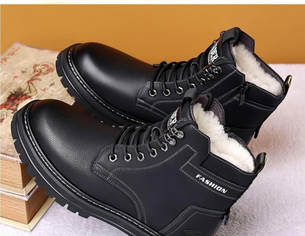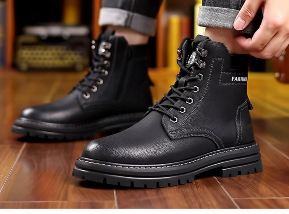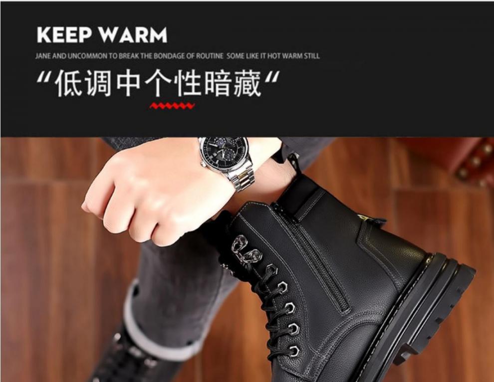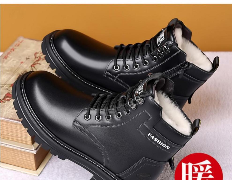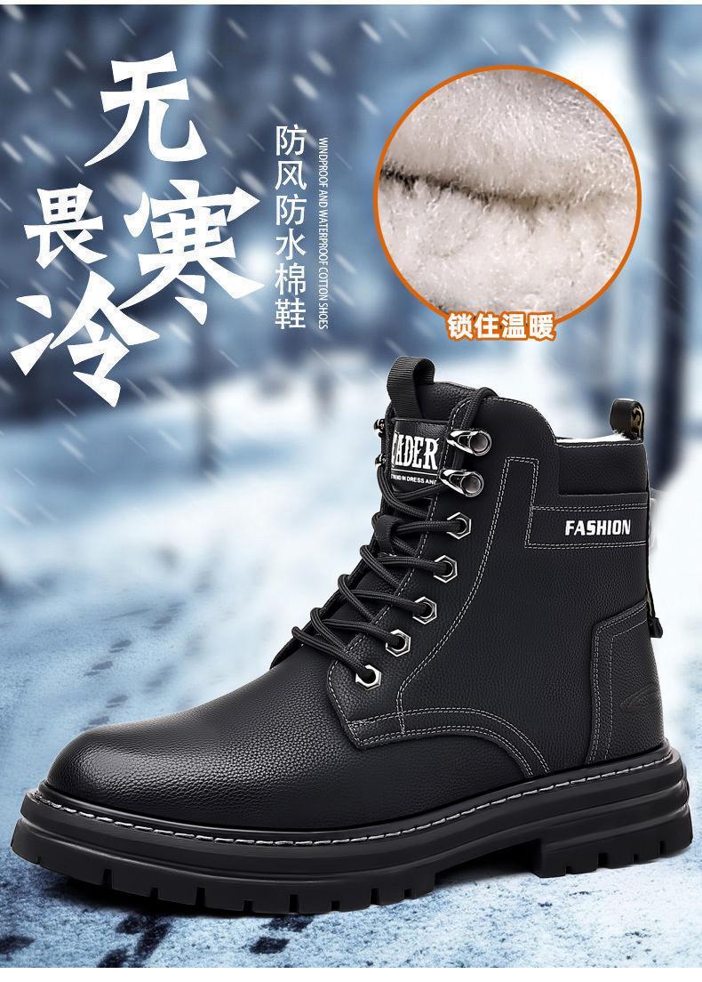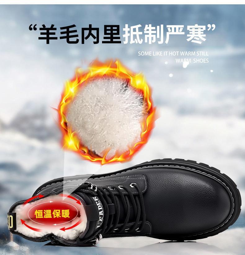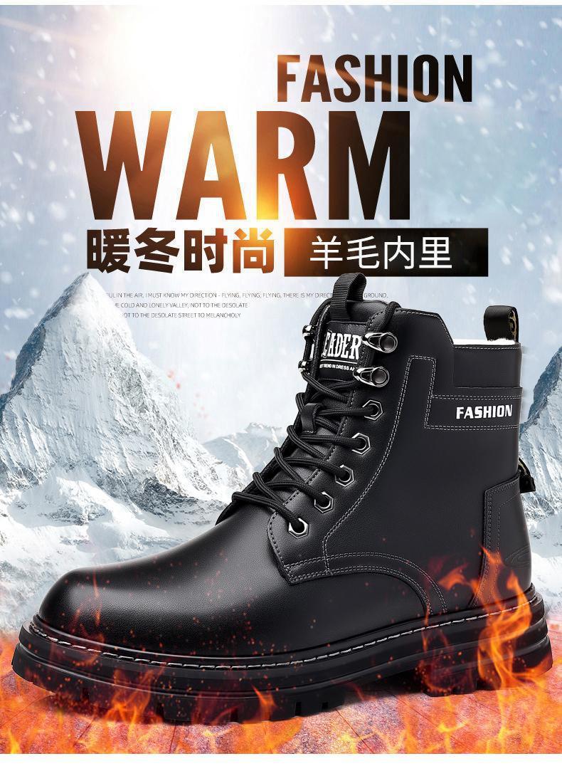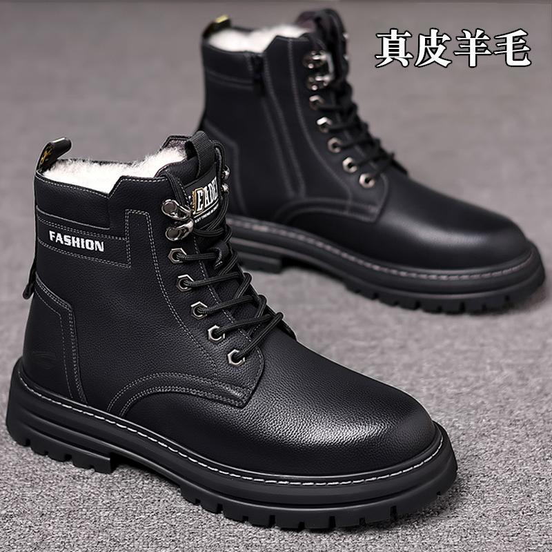 男性用マーティンブーツ男性用冬のベルベットは男性用ブーツの真皮が爆発した英倫風黒の高組ウールブーツを厚くした