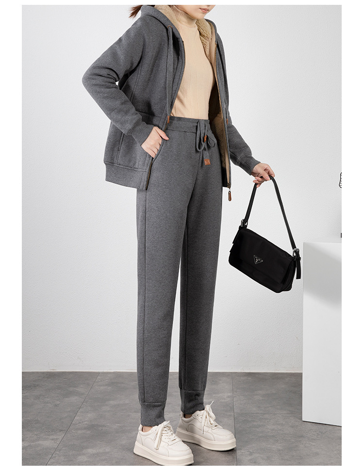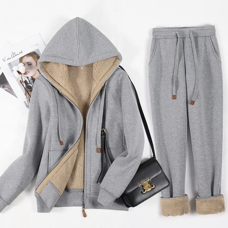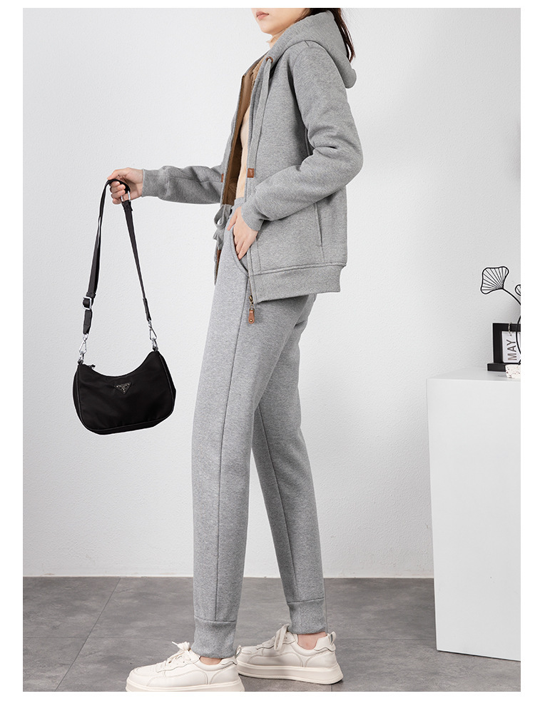加绒休闲运动套装女秋冬装2025新款宽松显瘦连帽卫衣阔腿裤两件套