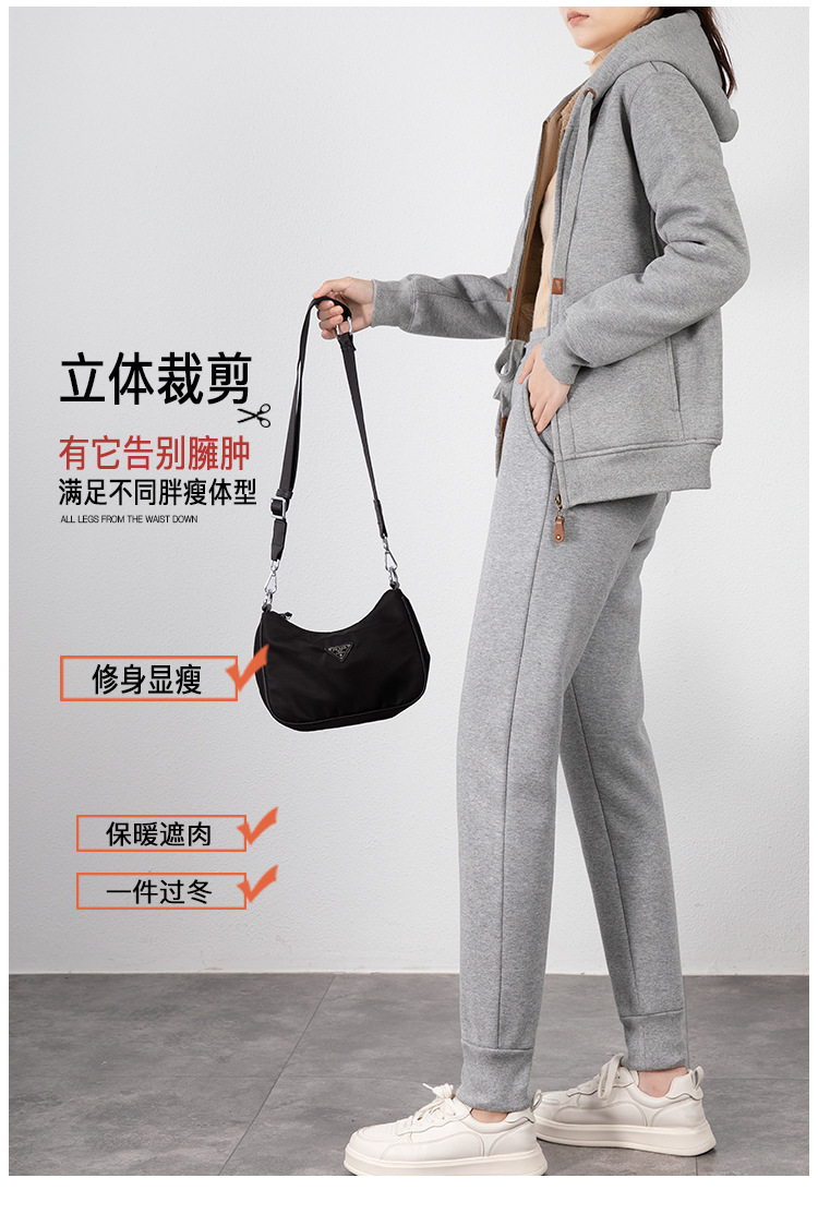 加绒运动套装秋冬季宽松新款显瘦韩版保暖减龄卫衣休闲跑步两件套