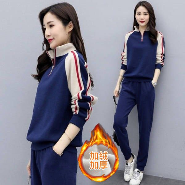 ベルベットの厚いカジュアルなスポーツスーツの女性秋冬の韓国版のゆるい長袖のズボンの2つのセット