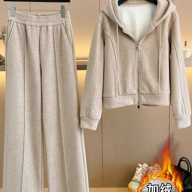 加绒加厚休闲两件套2025冬季新款减龄时尚运动高腰阔腿裤套装女潮