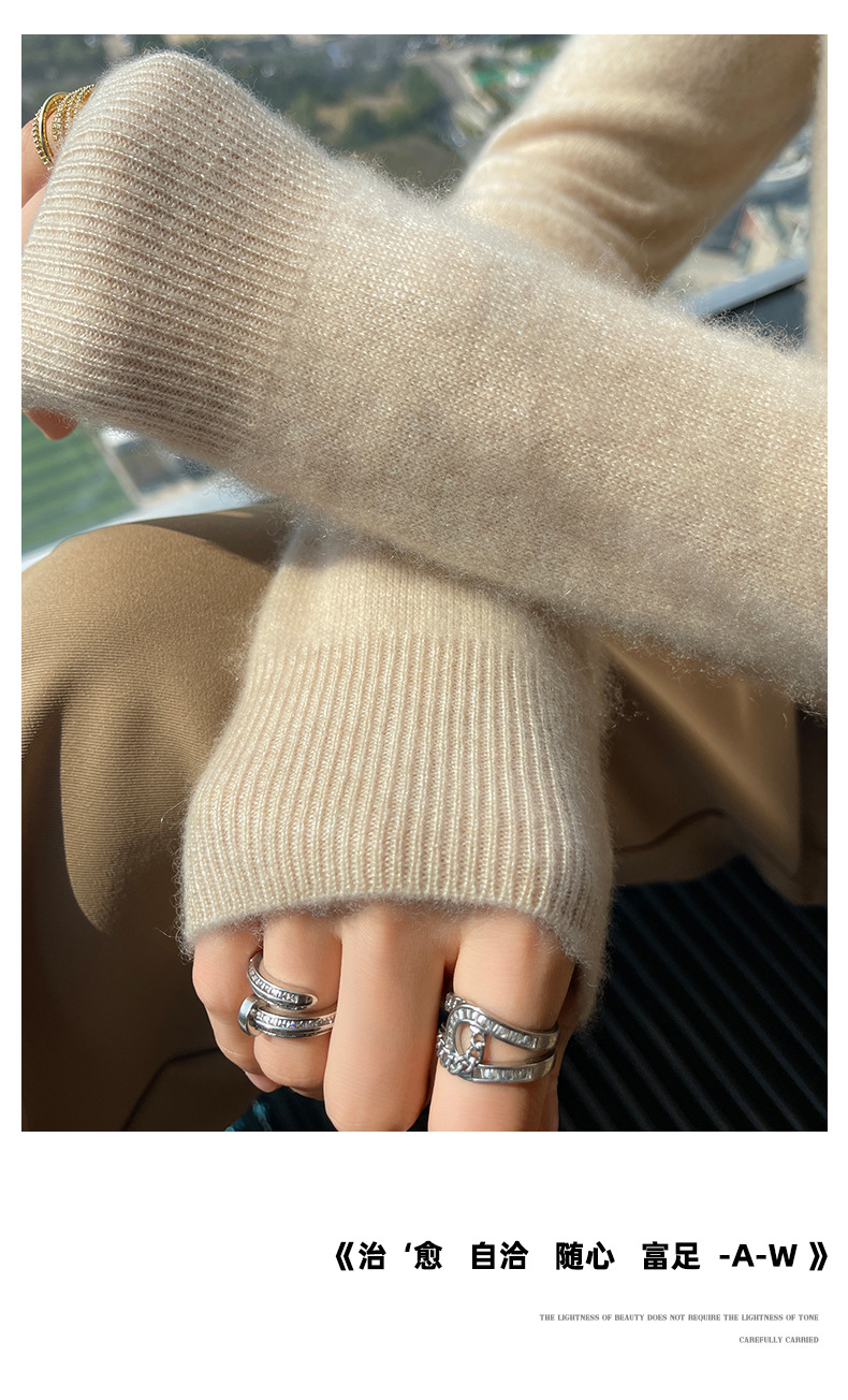 女士安迪绒堆堆领毛衣女修身高领25秋冬紧身内搭针织打底衫抽条