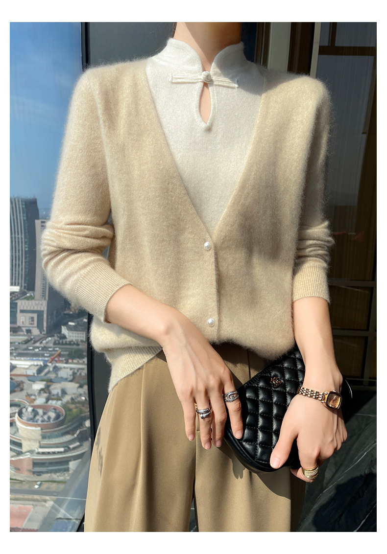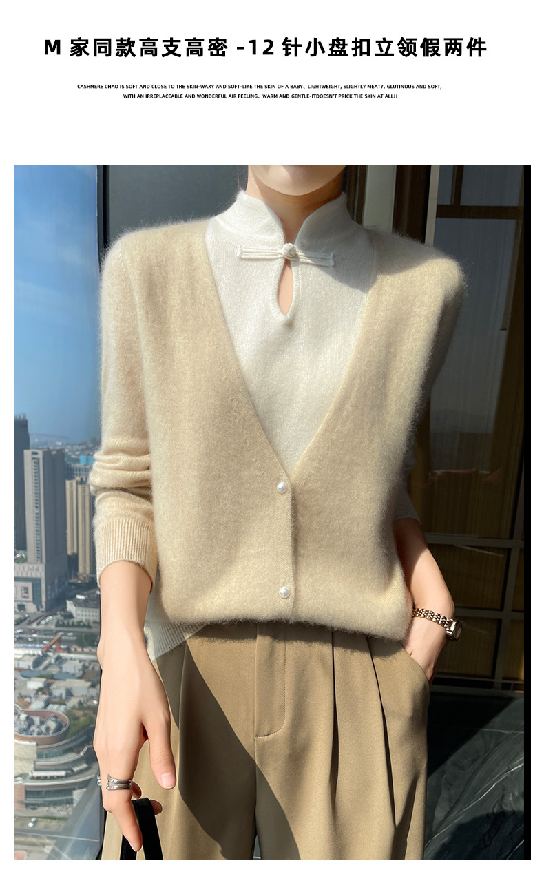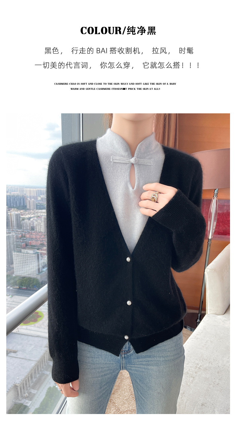 新中式立领国风山羊绒衫女秋冬新款复古盘扣软糯羊毛针织打底毛衣