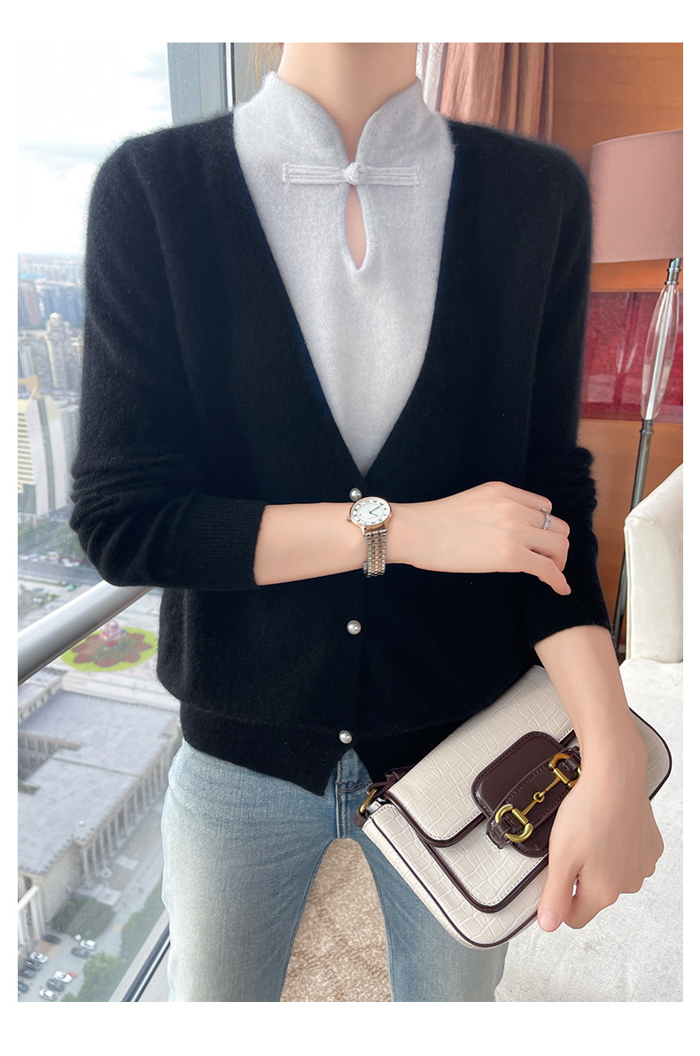 秋冬新款100%纯羊毛衫女新中式上衣旗袍领毛衣宽松百搭羊毛打底衫
