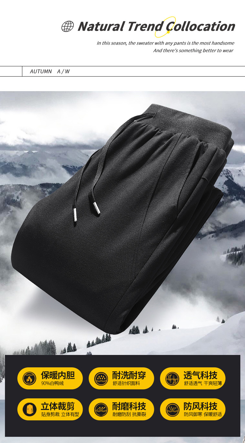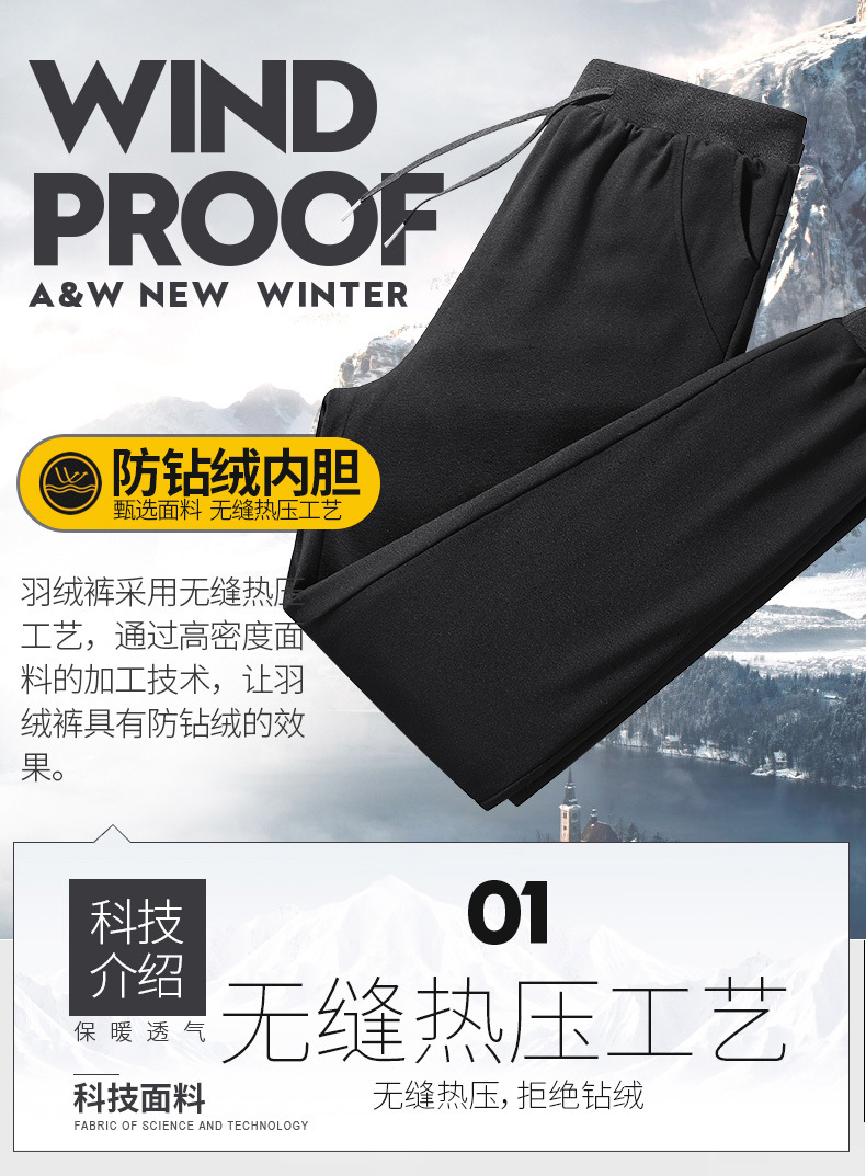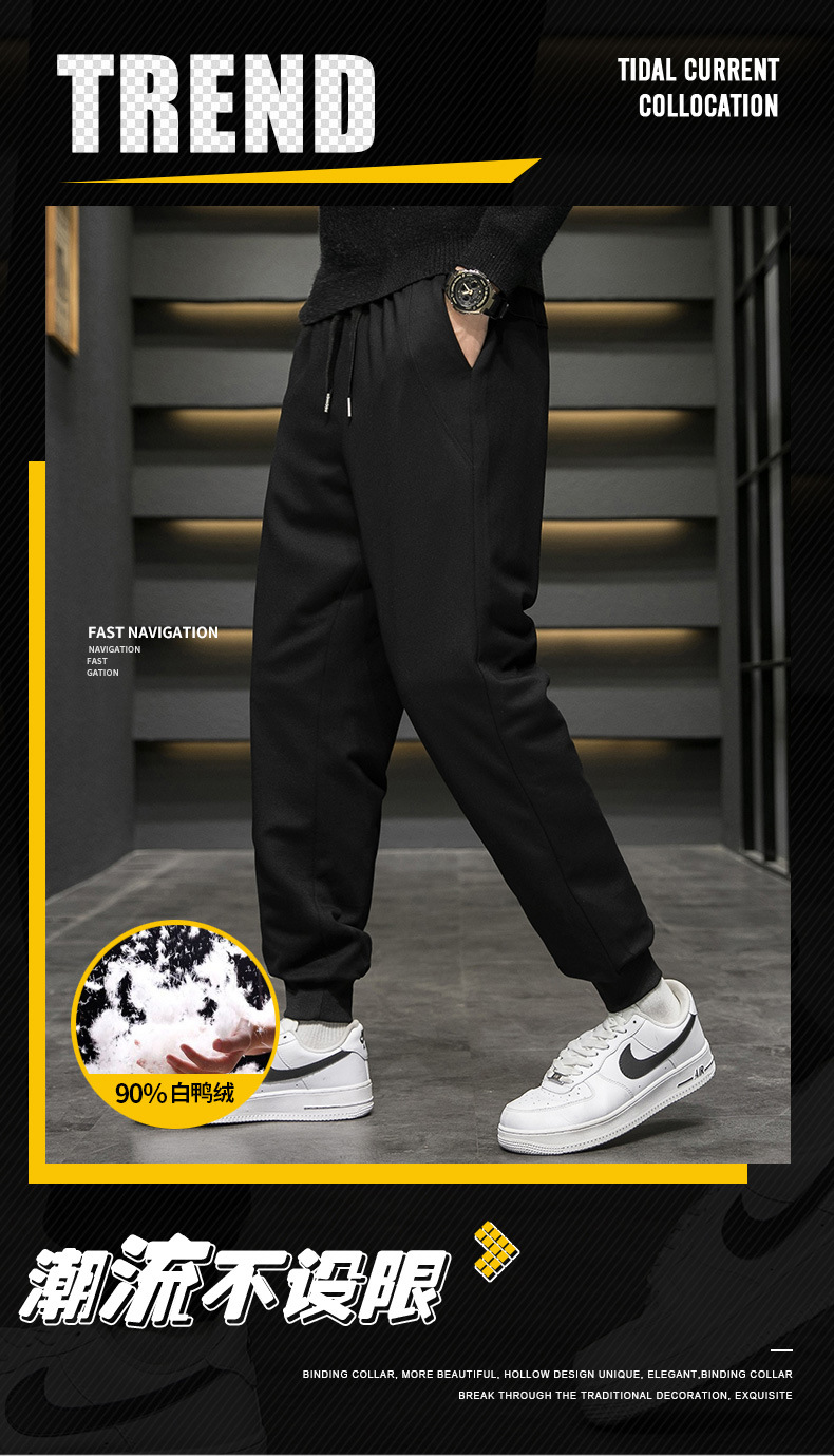 2024冬に起爆した90ガチョウのベルベットは、足の足のカジュアルなズボンを巻いて保温男性のダウンパンツを厚くした