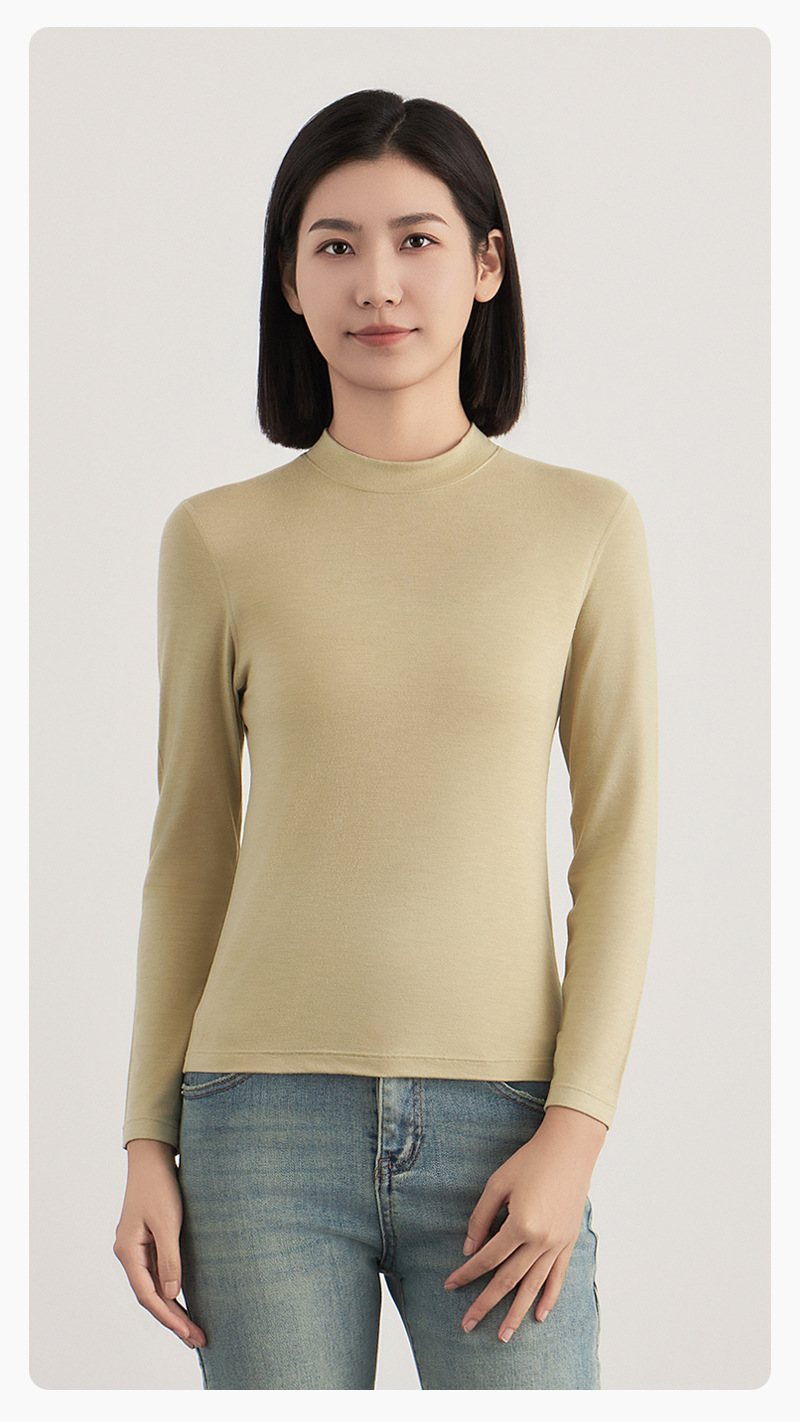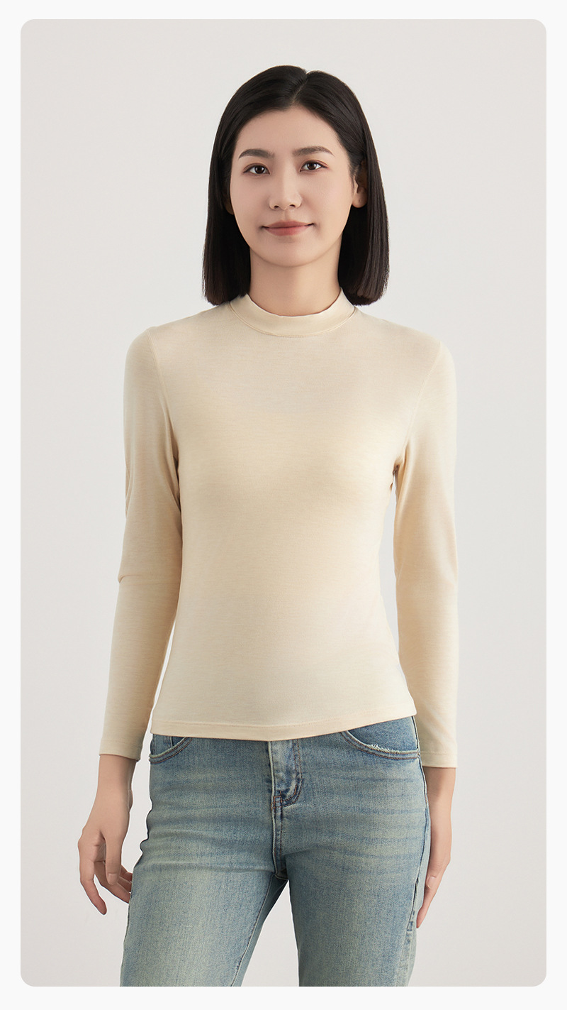 韓国風レディースインナーシャツ 春秋新作 高級感 ハーフタートルネック スリムフィット 長袖Tシャツ ベーシックトップス