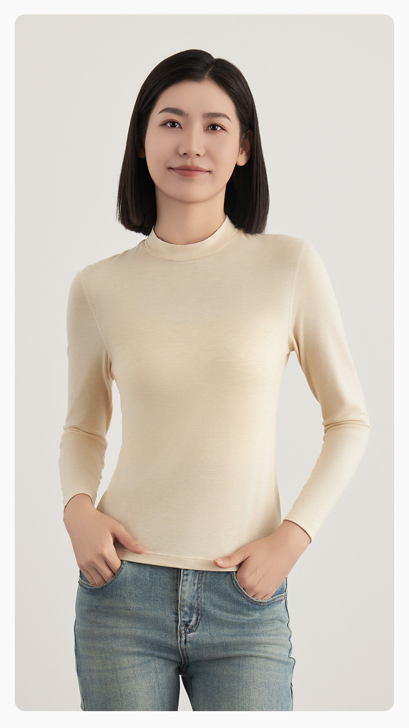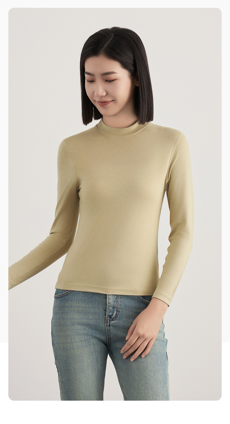 半高襟の底のシャツの女性の秋冬の新型の徳の絨毛のニットは秋の上着の女性の裸感の肌の底の服の秋の服を修理します。