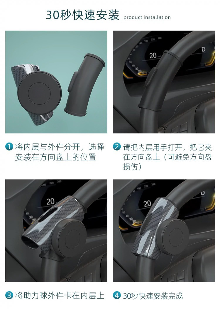韩国汽车方向盘助力球多功能单手转弯黑色省力球助力器辅助转向器