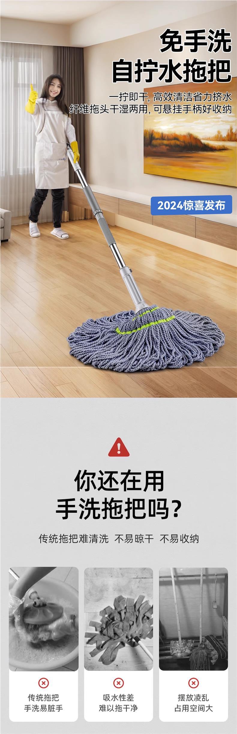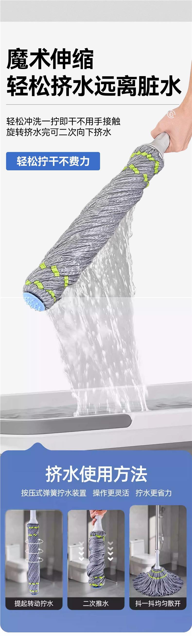 手を洗って自分で水をひねってモップを引くのを免除します。