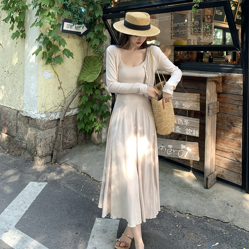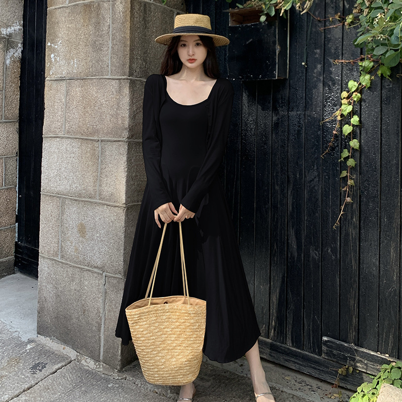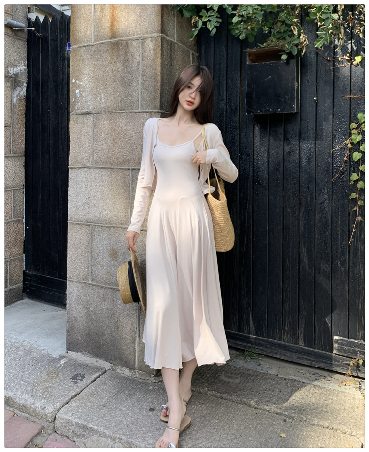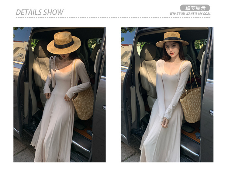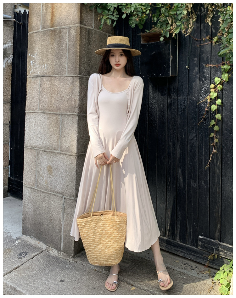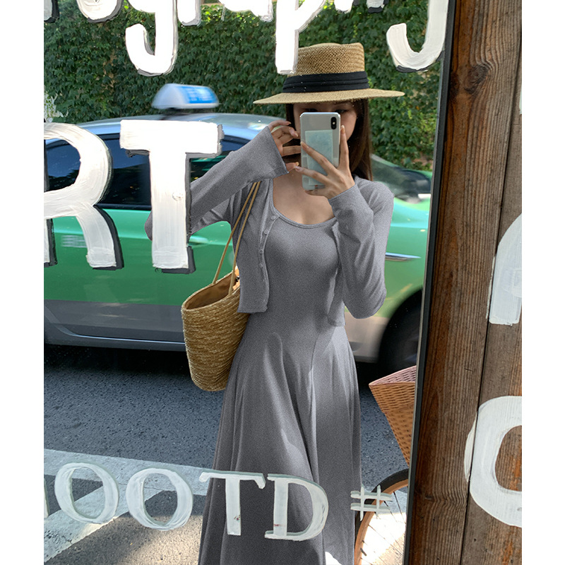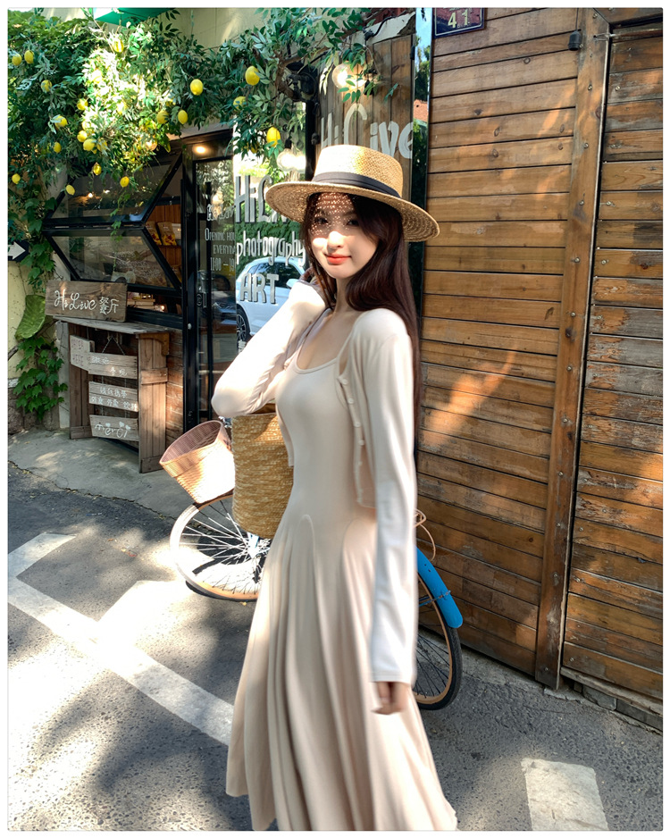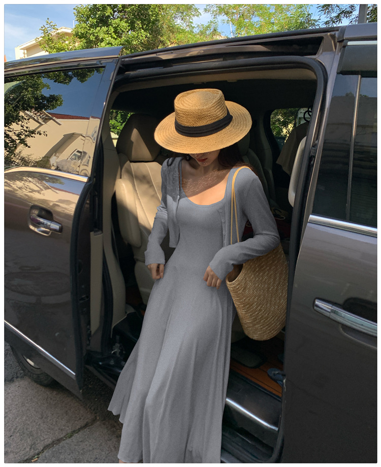2024秋の新型ペンダントワンピースのカーディガンファッション2点セットの優しい風がスリムに見えるスカート