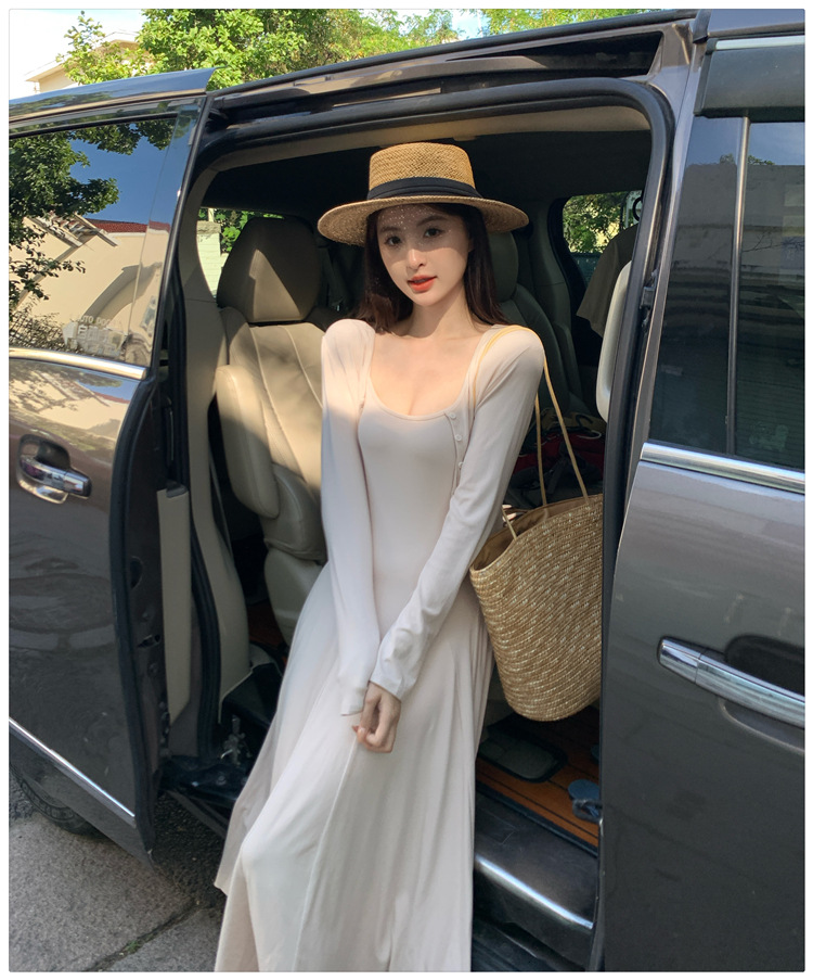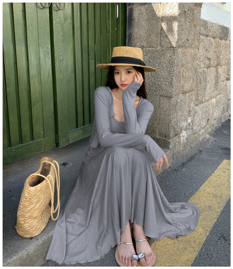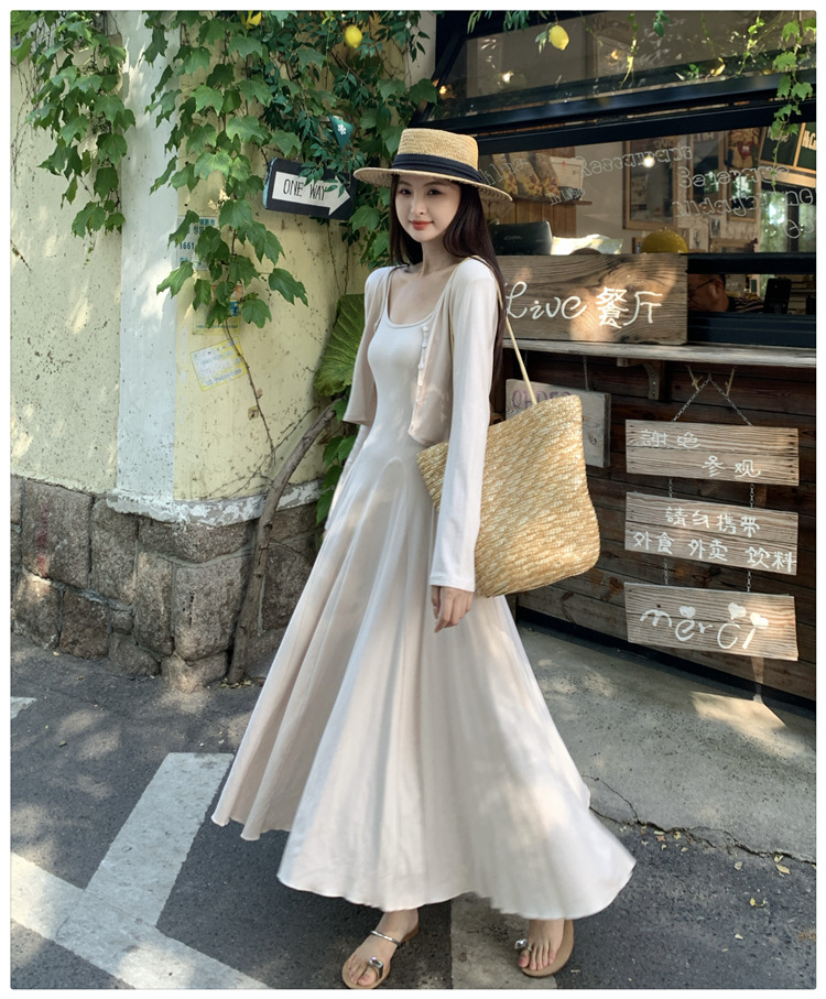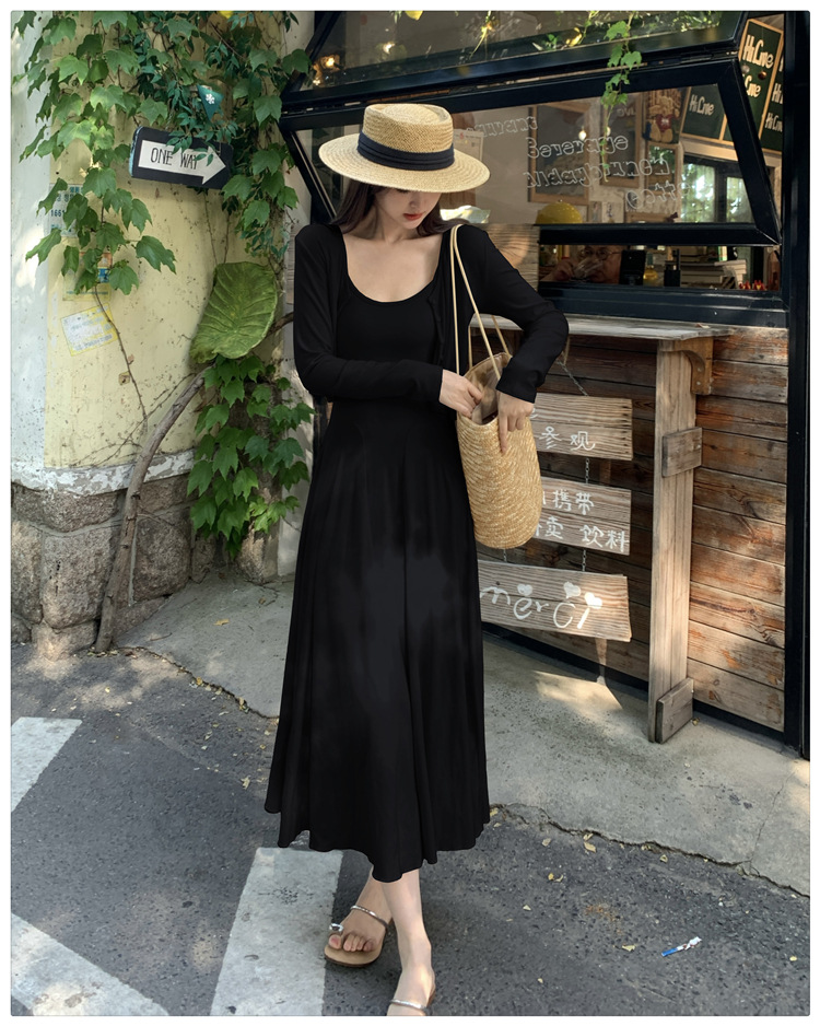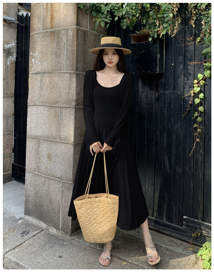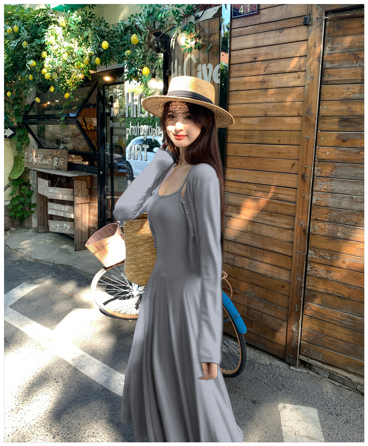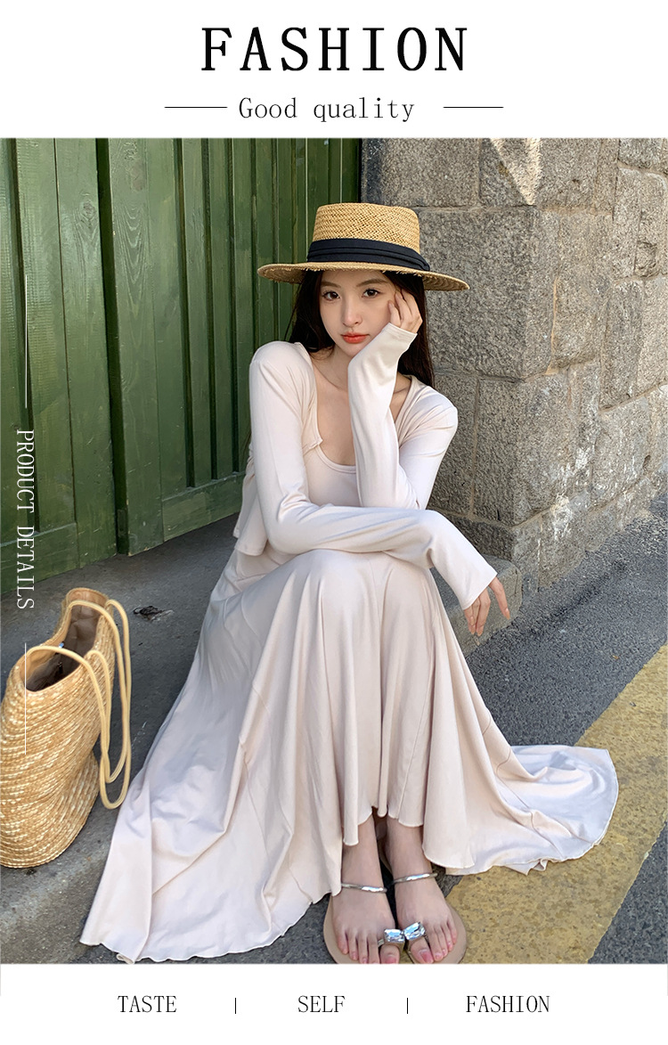 2024秋の新型ペンダントワンピースのカーディガンファッション2点セットの優しい風がスリムに見えるスカート
