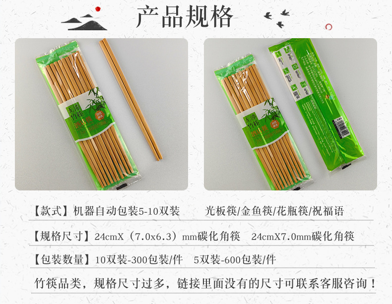 炭化竹箸5-10双装機械包装箸消毒箸光板箸金魚箸花瓶箸メーカー卸売り
