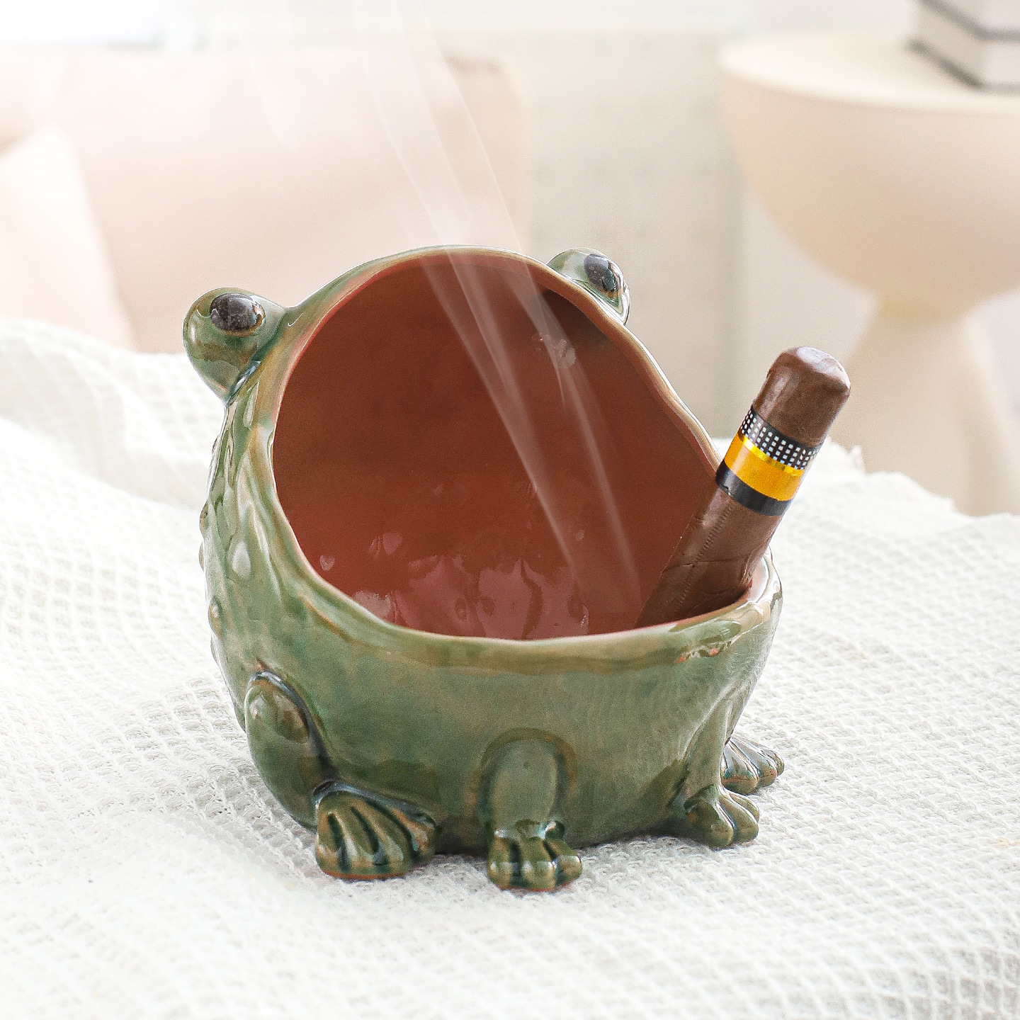跨境创意搞怪三足青蛙金蟾烟灰缸清水柴烧陶瓷烟缸多功能装饰品