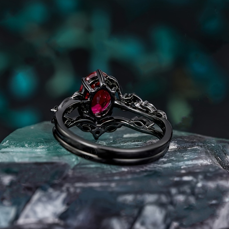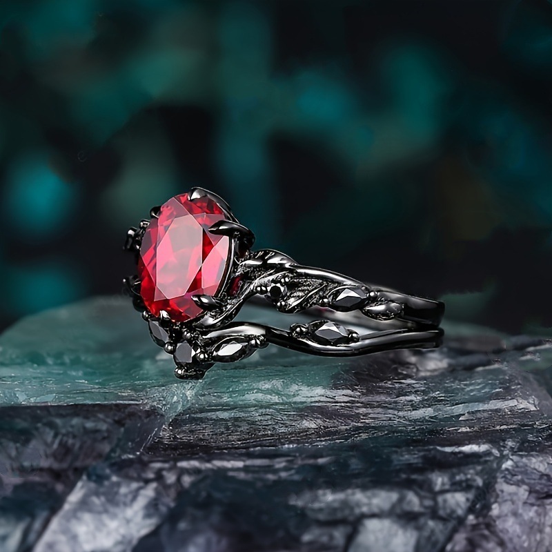 跨境爆款专供欧美网红直播玫瑰红宝石宫廷风时尚2件戒情侣戒指