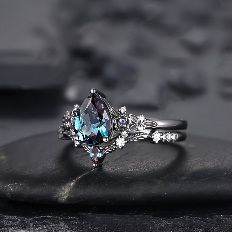 2点セット水滴ジルコン女性銃黒指輪国境を越えた独立駅の熱売金はシンプルでファッション的で洗練された指輪である