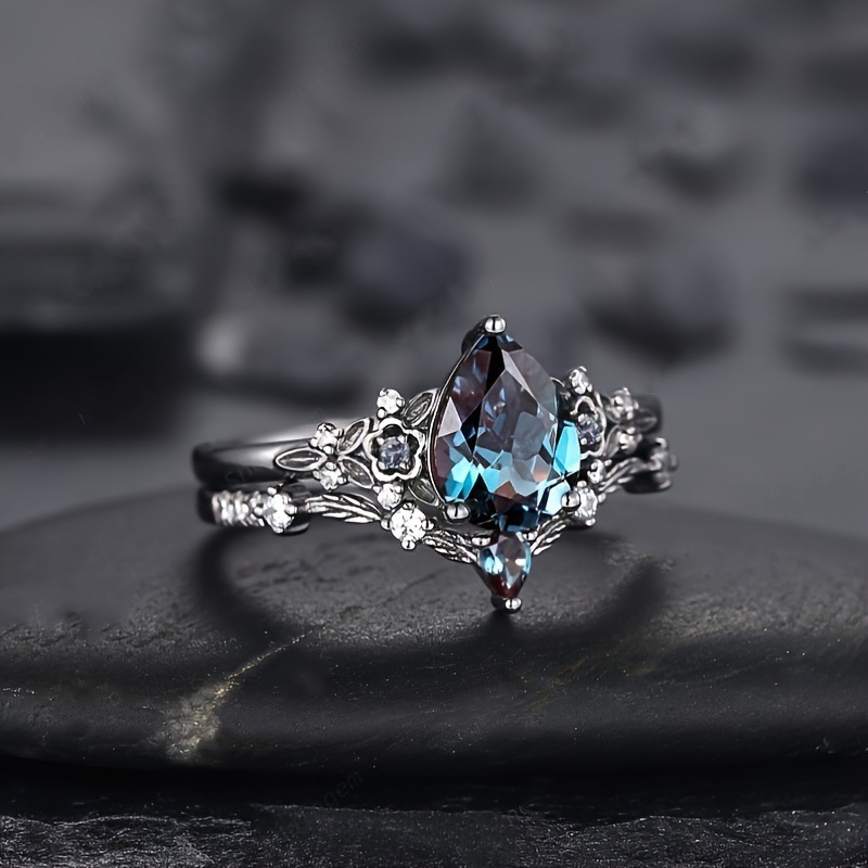 健傑の新型クロスボーダーTEMUファッション対戒銃黒モザイク海藍ドリル指輪欧米ins婚約アクセサリー女