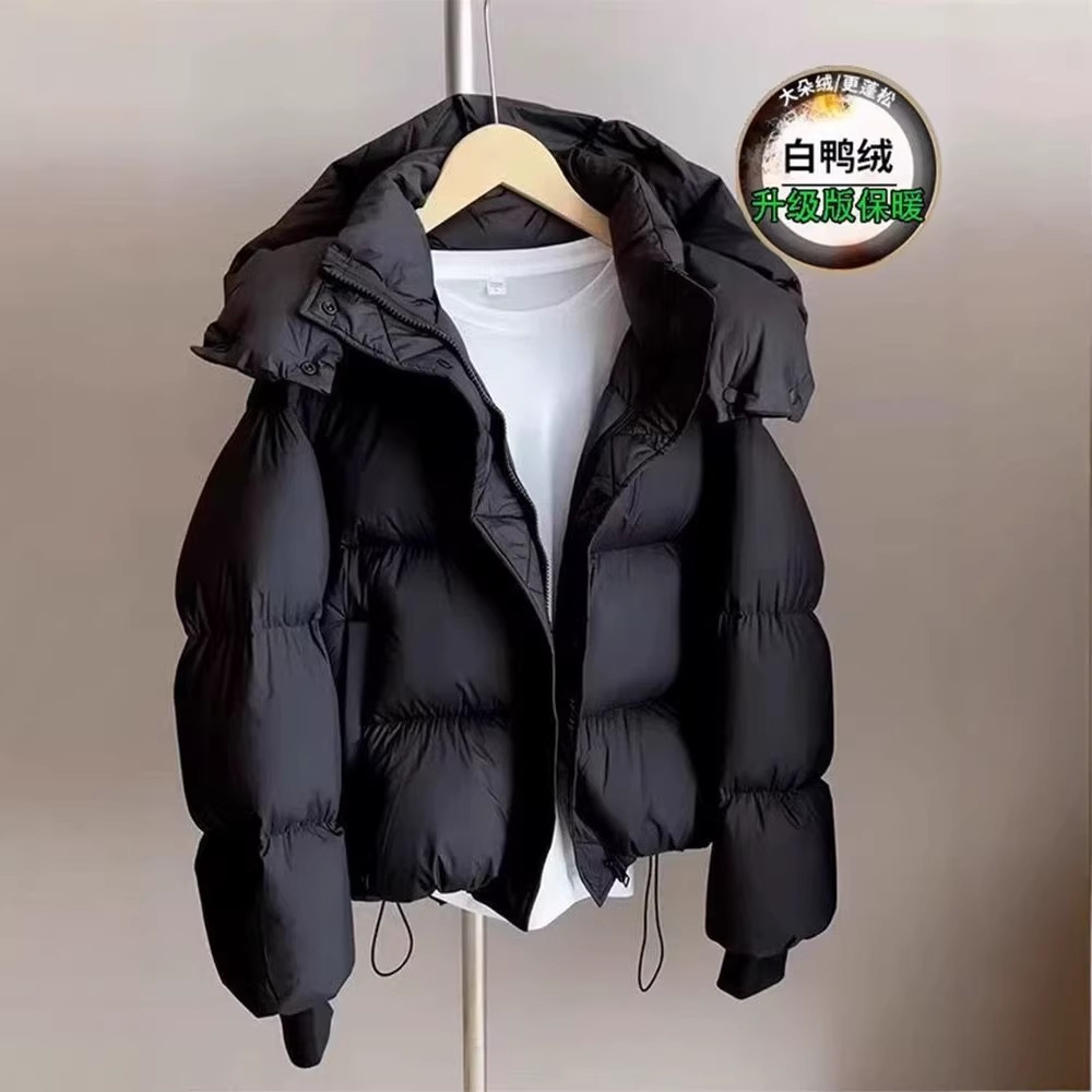棉服女短款2025新宽松冬季加厚泡芙零压面包服小个子连帽棉衣外套
