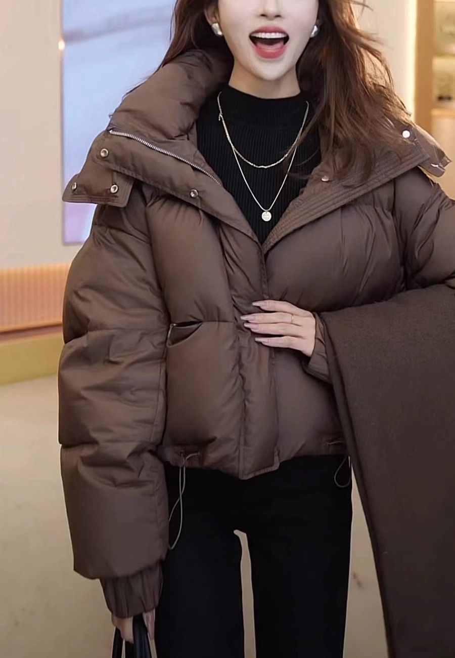 美拉德面包服泡芙感棉服女短款连帽外套宽松加厚保暖冬装韩版棉袄