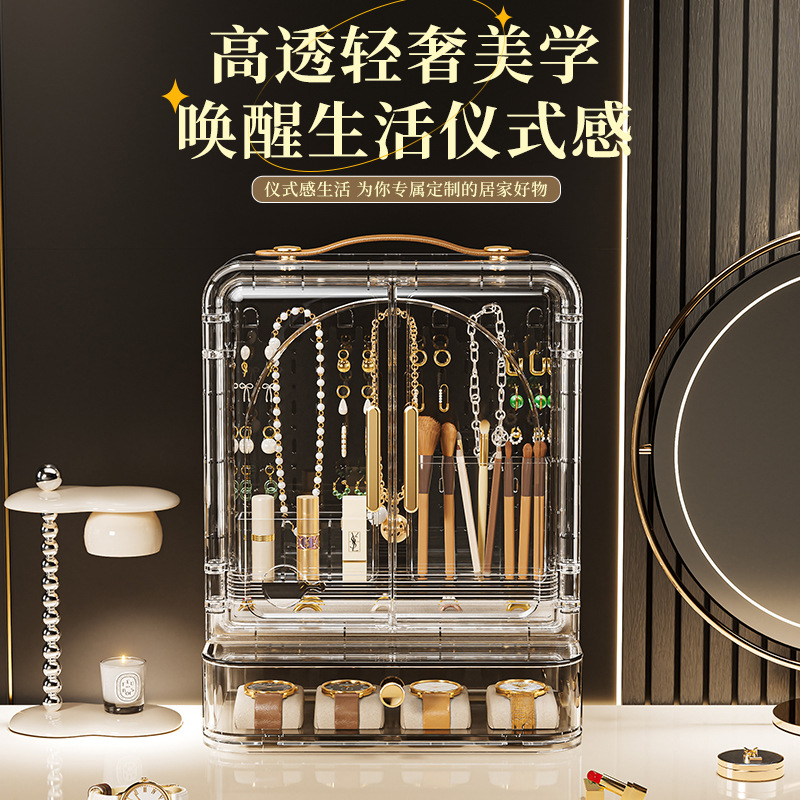 贅沢な化粧品収納ケースpet透明蓋付き防塵収納ケース引き出し式口紅マスク棚