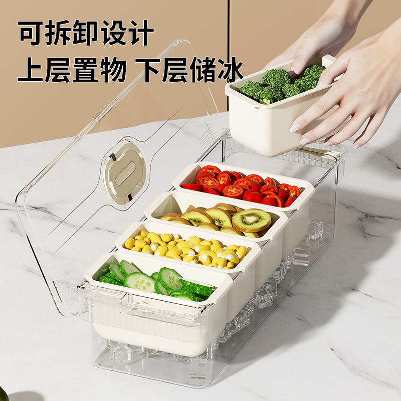 アイスサラダ箱寿司軽食野菜果物弁当箱透明長方形分格蓋付き氷保存箱