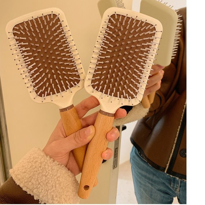 韓国ins風シンプルエアバッグ櫛木柄静電気防止カールマッサージ櫛高颜値櫛クロスボーダー