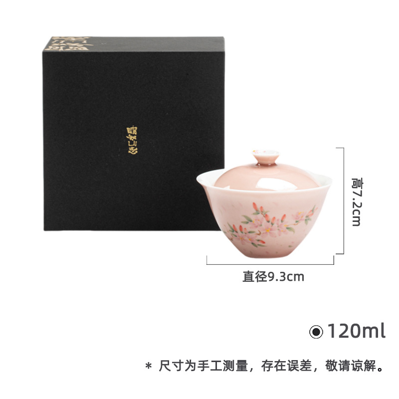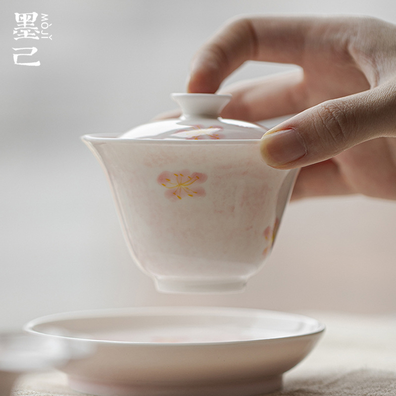 墨己手描き桜日本式蓋碗工夫茶器ぼかしピンクの可愛いお茶碗家庭用玉泥茶蓋碗