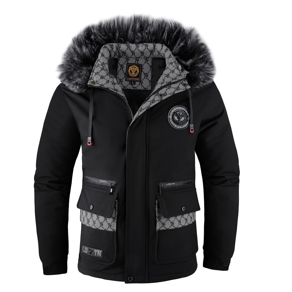 跨境外贸冬新款男士大毛领加绒加厚棉衣外套棉服外套父亲爸爸