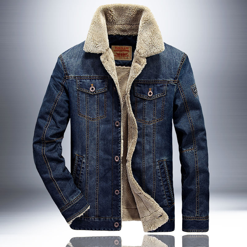国境を越えた対外貿易速売はアマゾンのデニム綿ジャケットの男性カジュアルな工装の大きいサイズとベルベットの厚い上着のコートを販売している