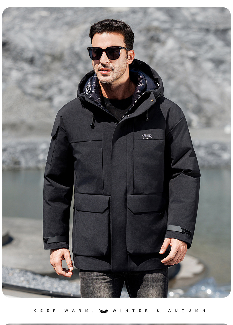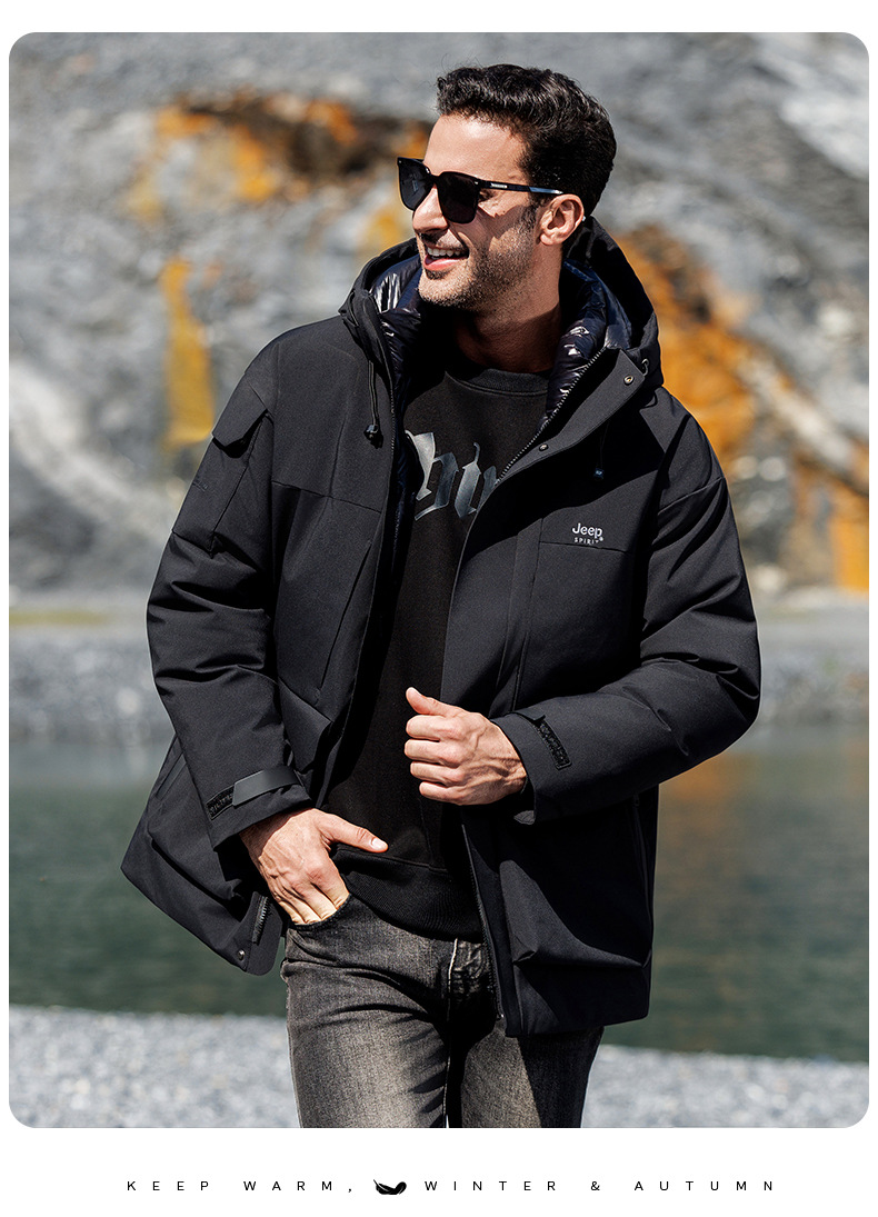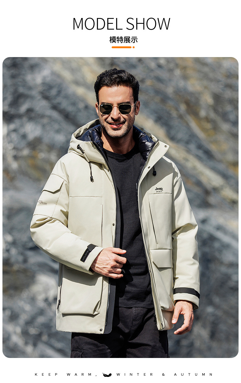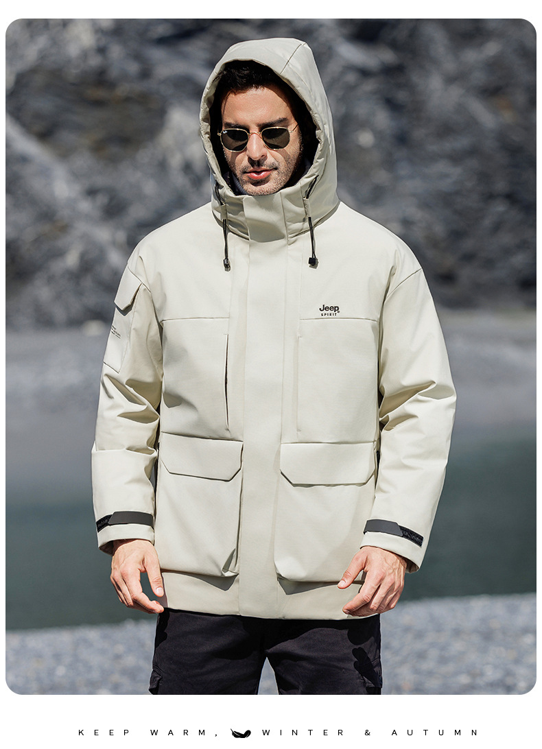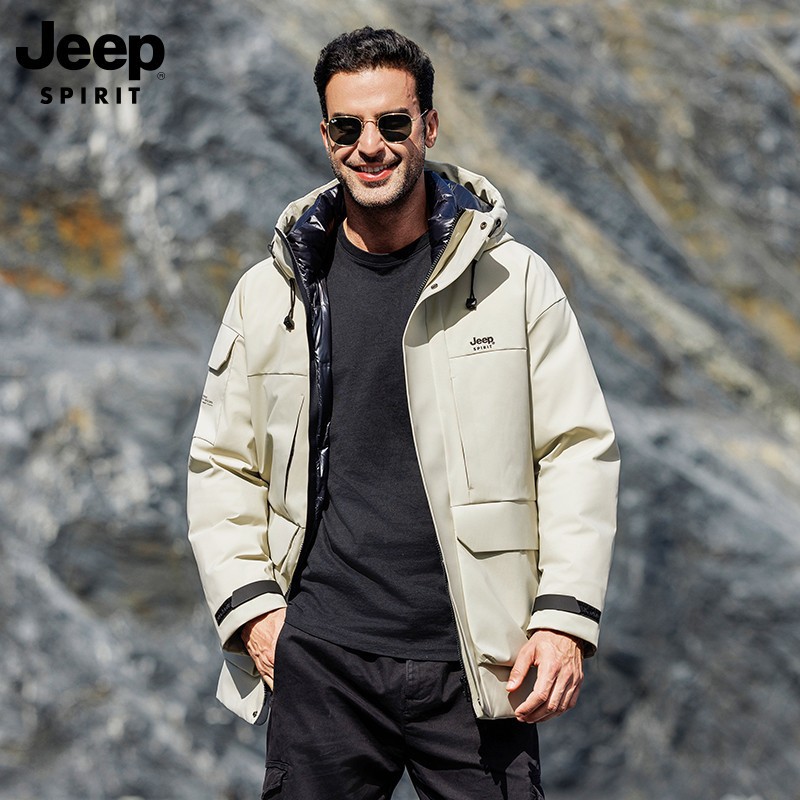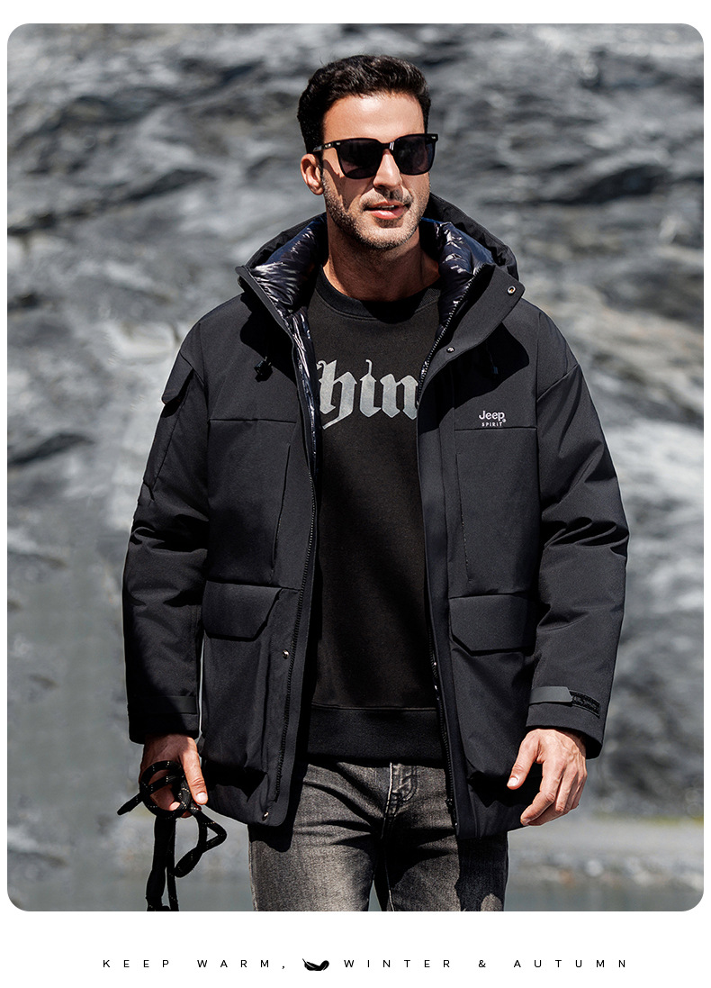 JEEP SPIRIT男性ダウンジャケット秋冬防風フード付き保温新型コート男