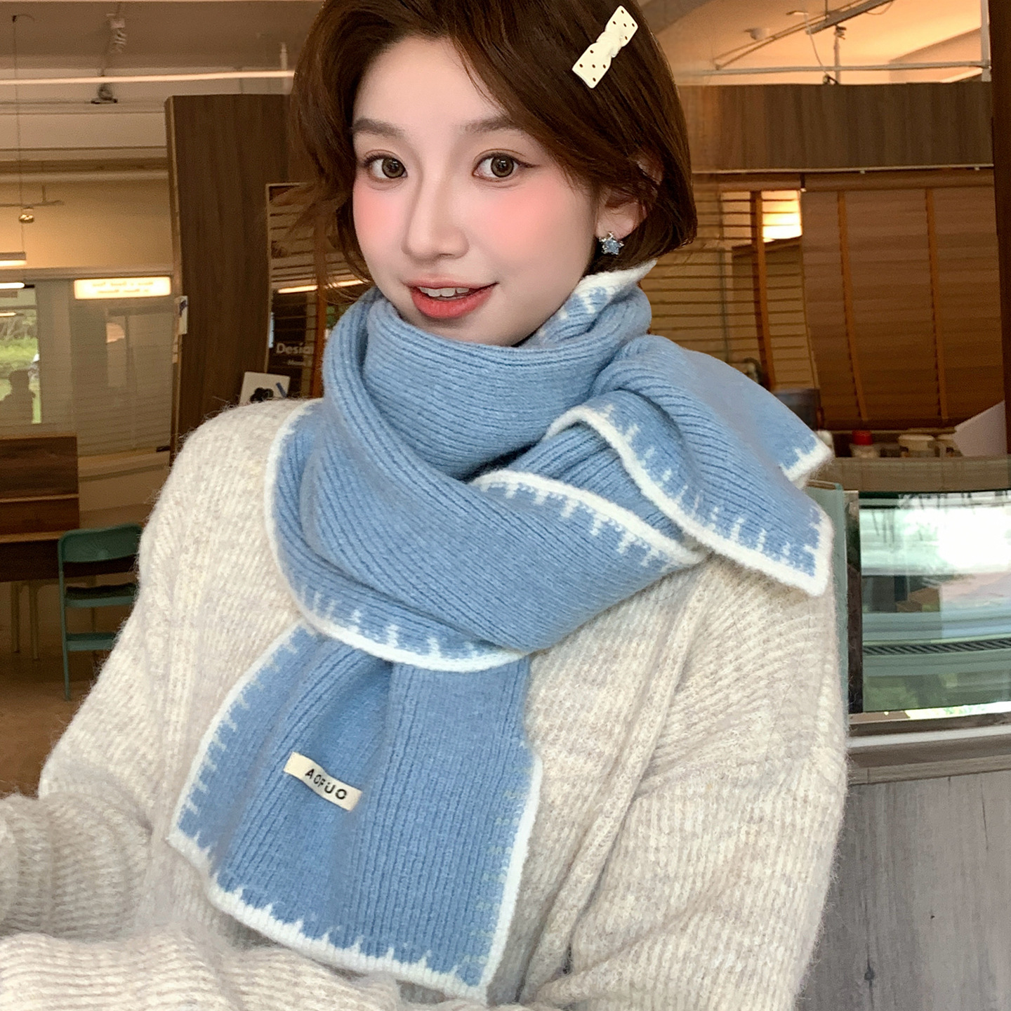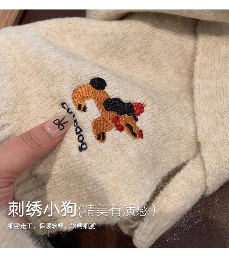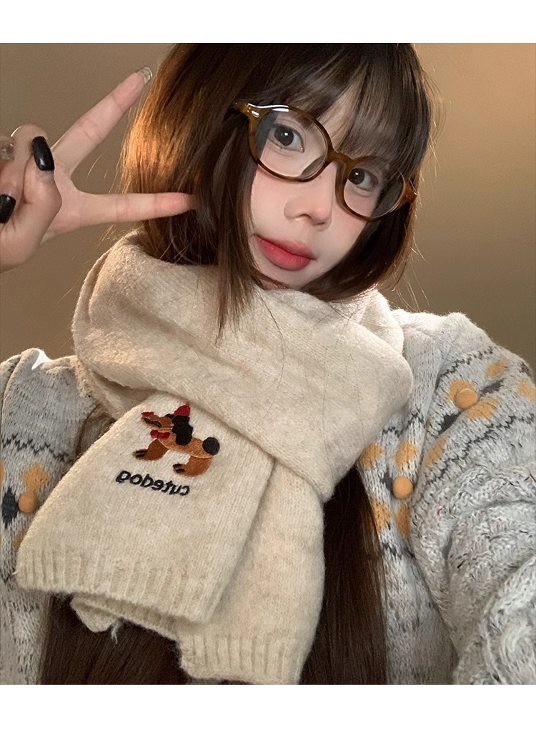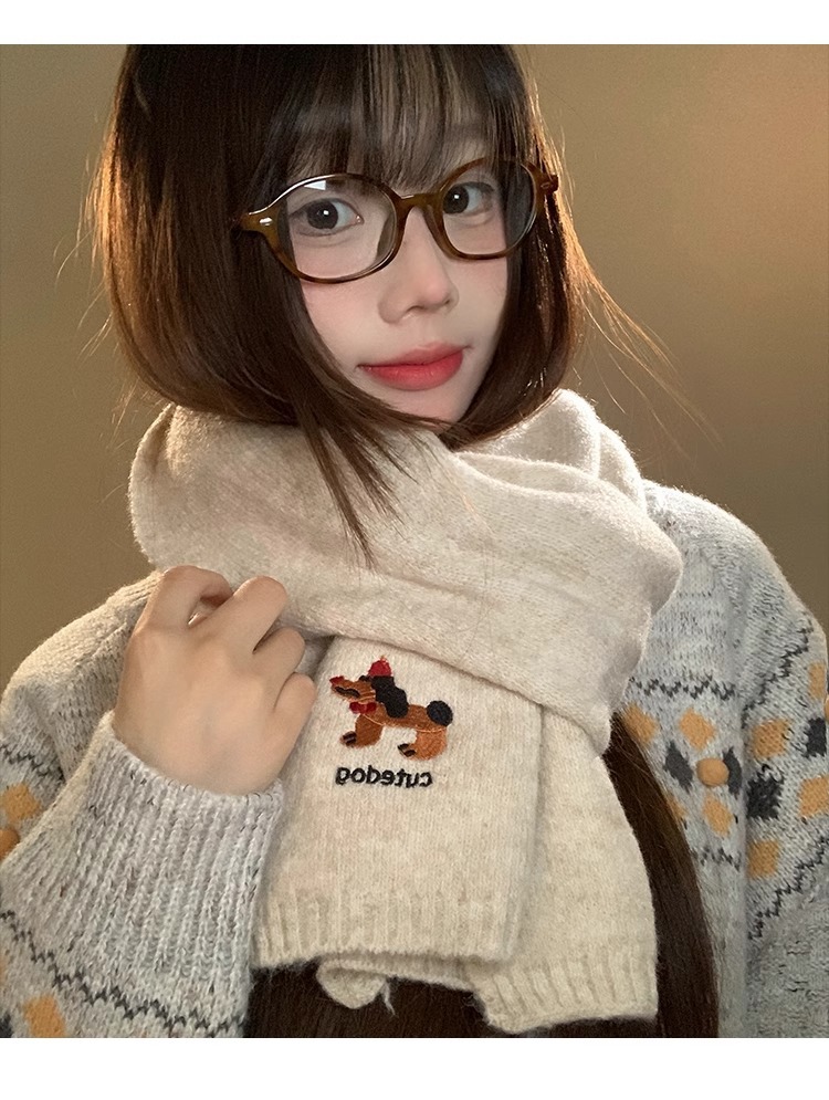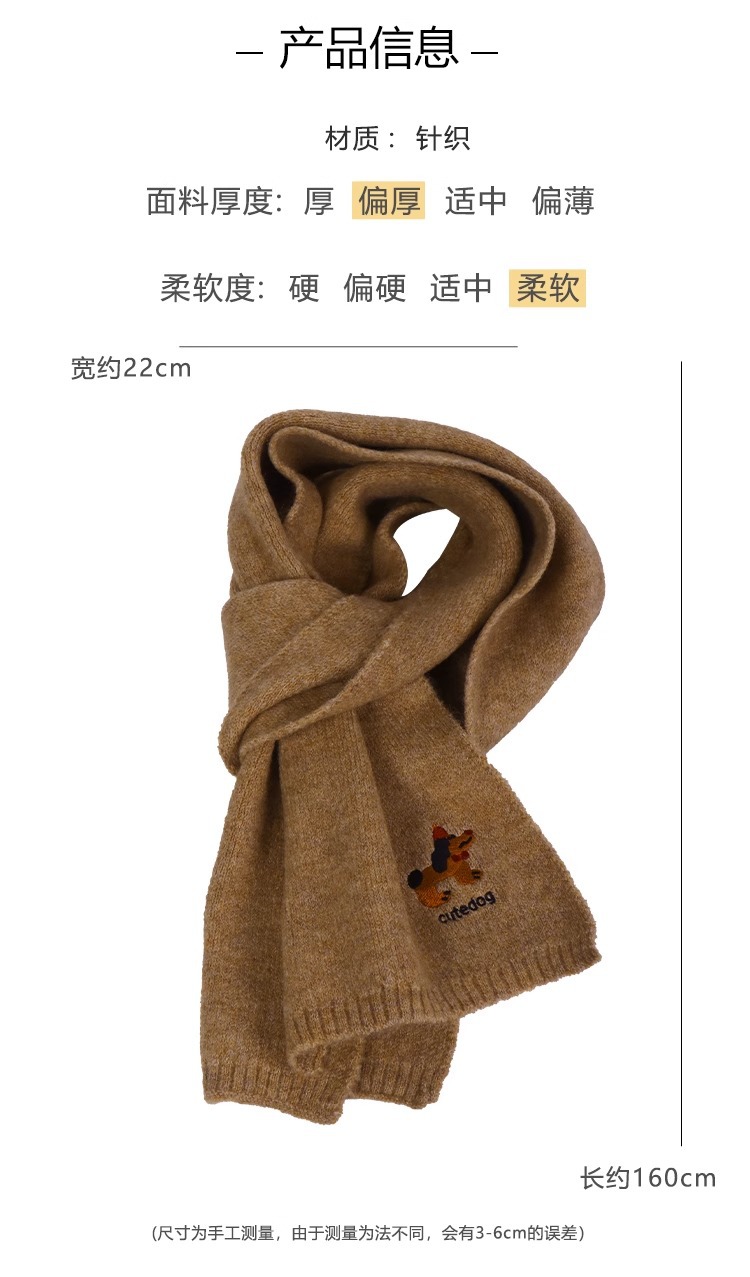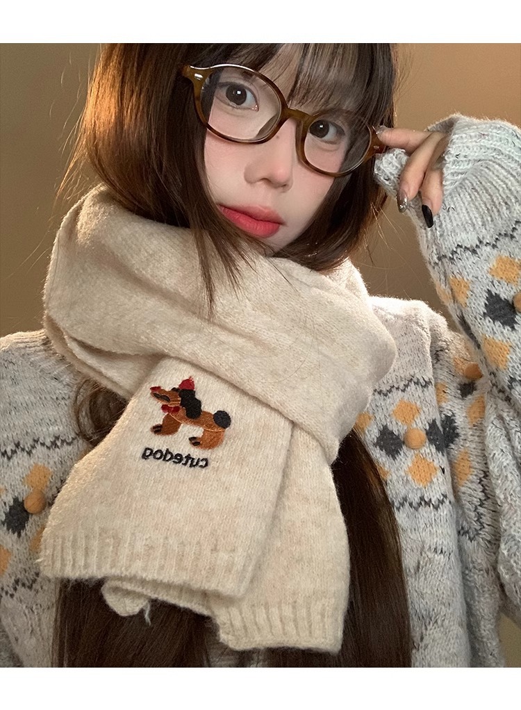 日系のかわいい子犬の刺繍のマフラーの女性の秋の冬の2024の新型の保温の百合学院の風のメリヤスのマフラーの潮