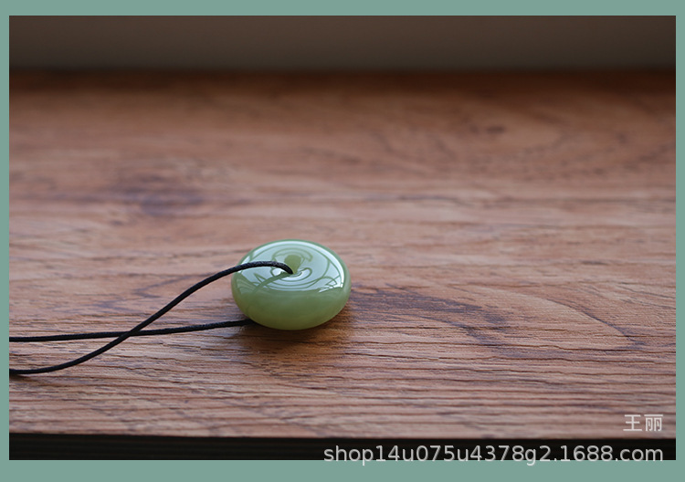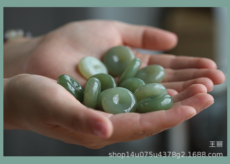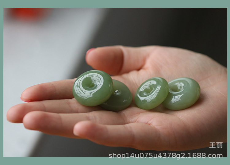 新疆和田碧玉を卸売りして、ホウレンソウの緑の平安ボタンを掛けます。