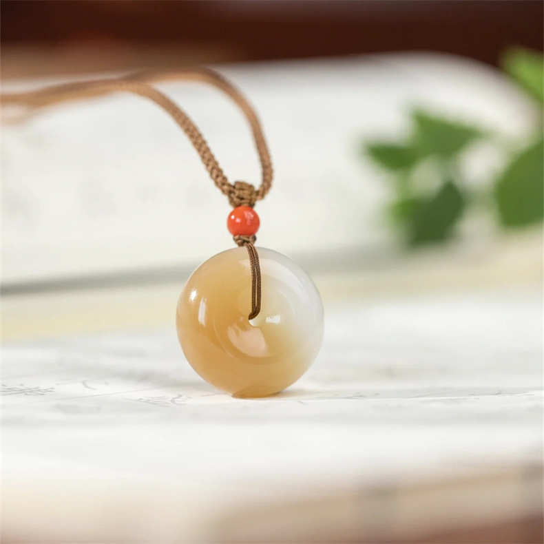 天然新疆和田玉色の且末糖白玉平安扣ペンダント、男女兼用金糸玉ネックレスペンダント