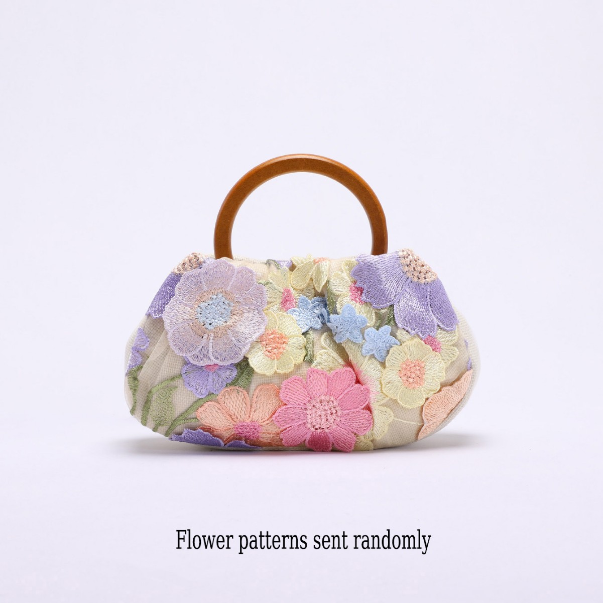 圆环木质手提包竹节包贴花刺绣度假风女士手拎包珍珠亮片晚宴包