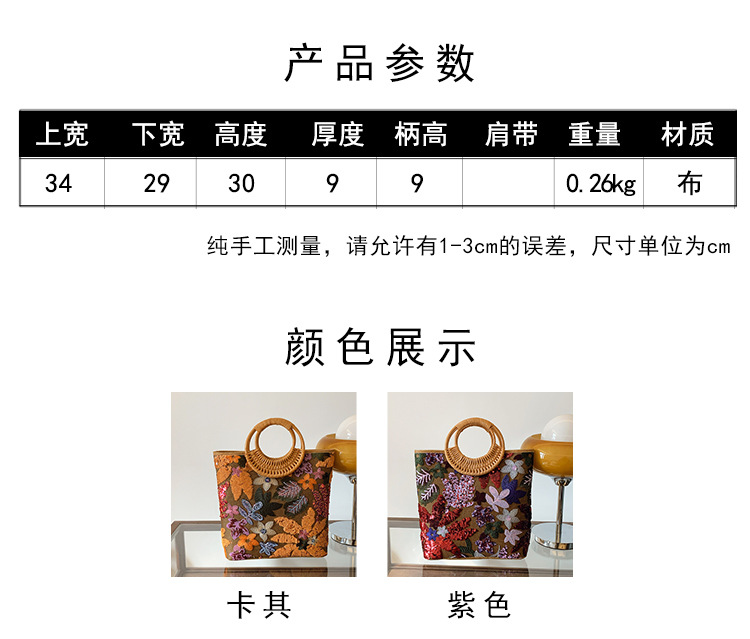 新中式国风竹节手提包包女新款网纱刺绣亮片贴花度假风手拎托特包