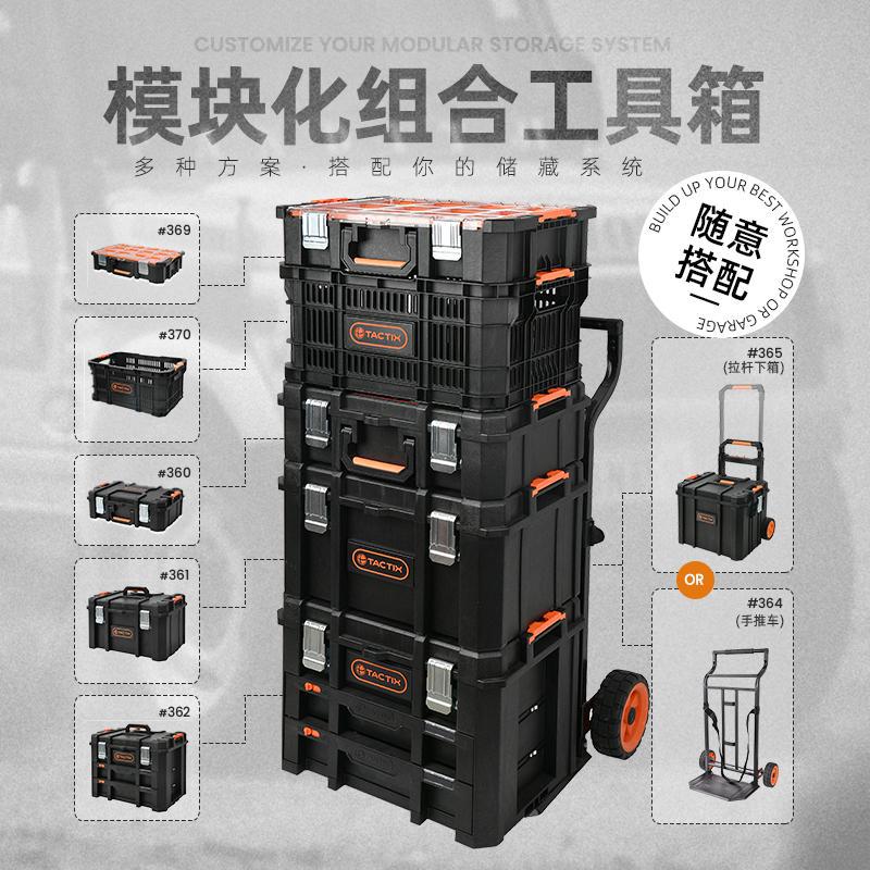 拓为tactix重型组合式拉杆堆叠工具箱模块化工业级移动轮子箱推车