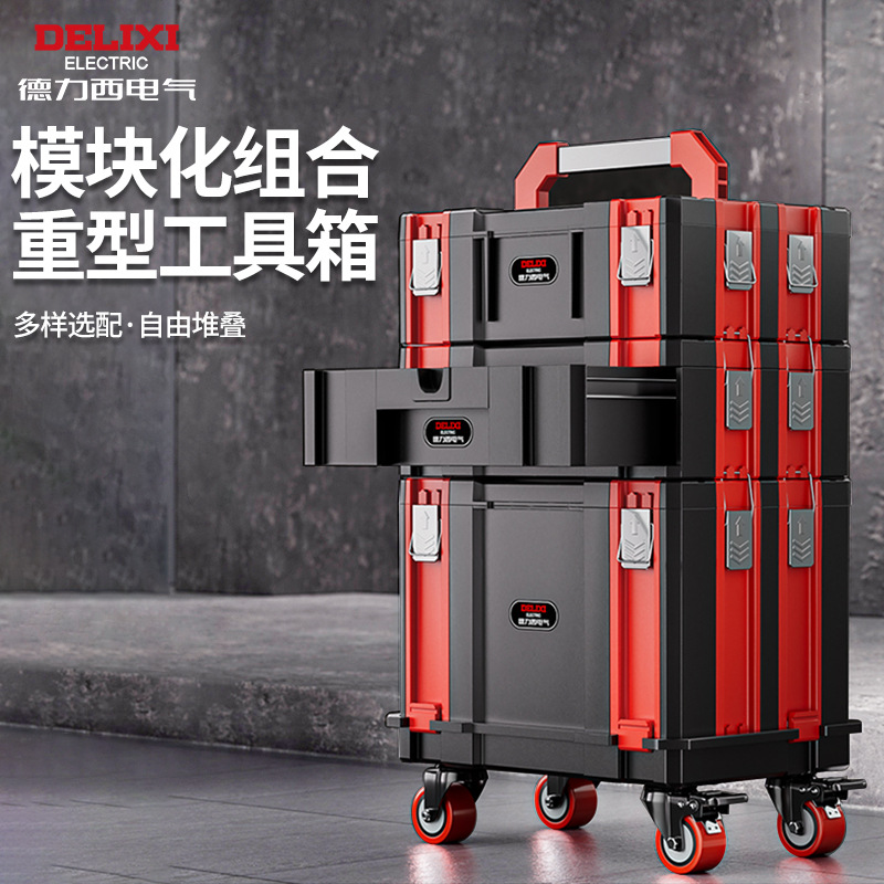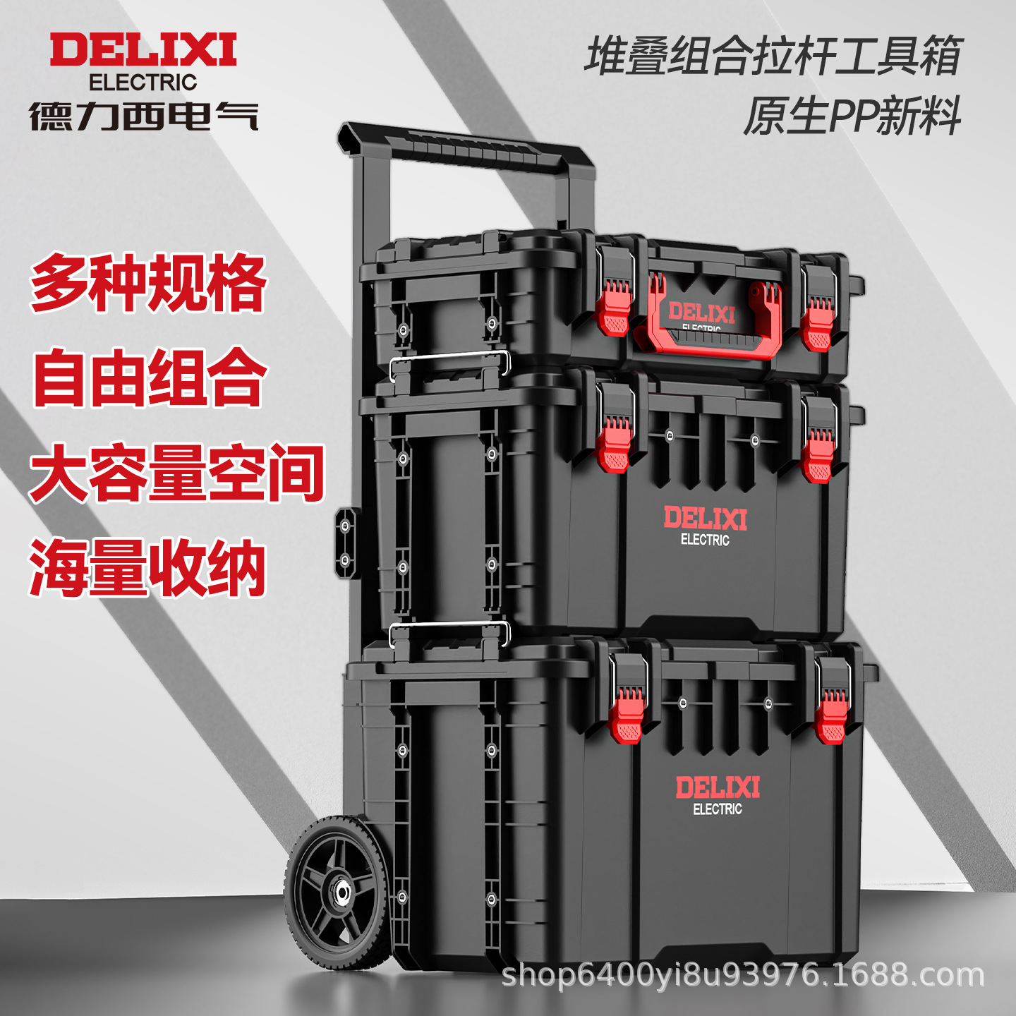 德力西拉杆工具箱组合式堆叠工具箱多功能大容量收纳箱结实省力