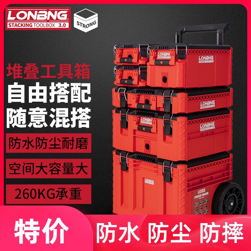 龙邦工具箱拉杆箱工业级多功能五金工具收纳箱钓鱼组合堆叠箱套装