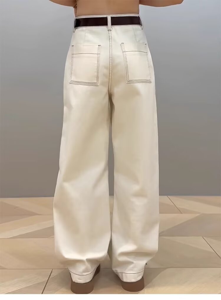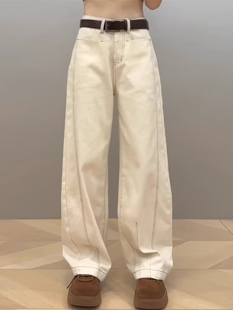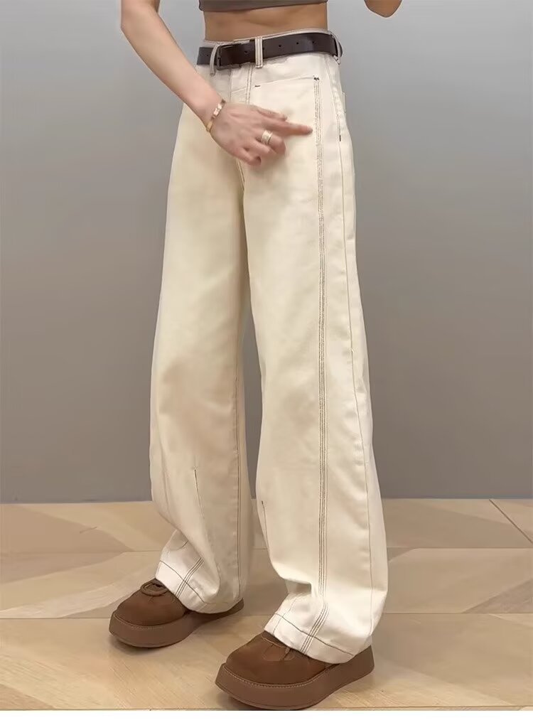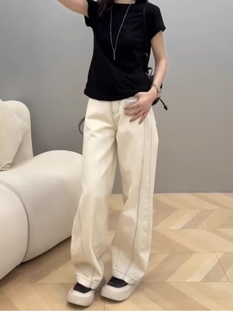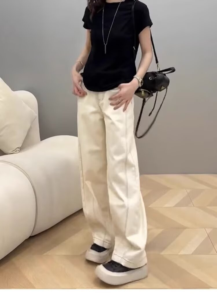 広脚ジーンズ女性夏春秋2025年新型薄いギャル白色のやせたデザイン感のあるストレートパンツ