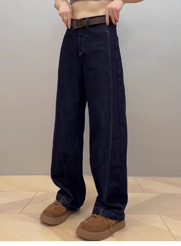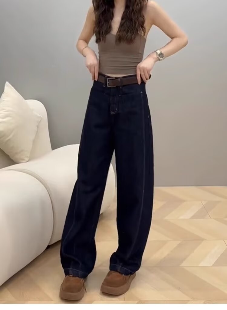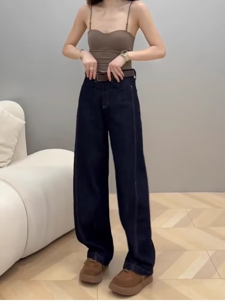 秋冬の新型復古ブラウンカレー色の広脚ジーンズin大サイズの太ったmmが痩せているアメリカのストレートカジュアルパンツ女性